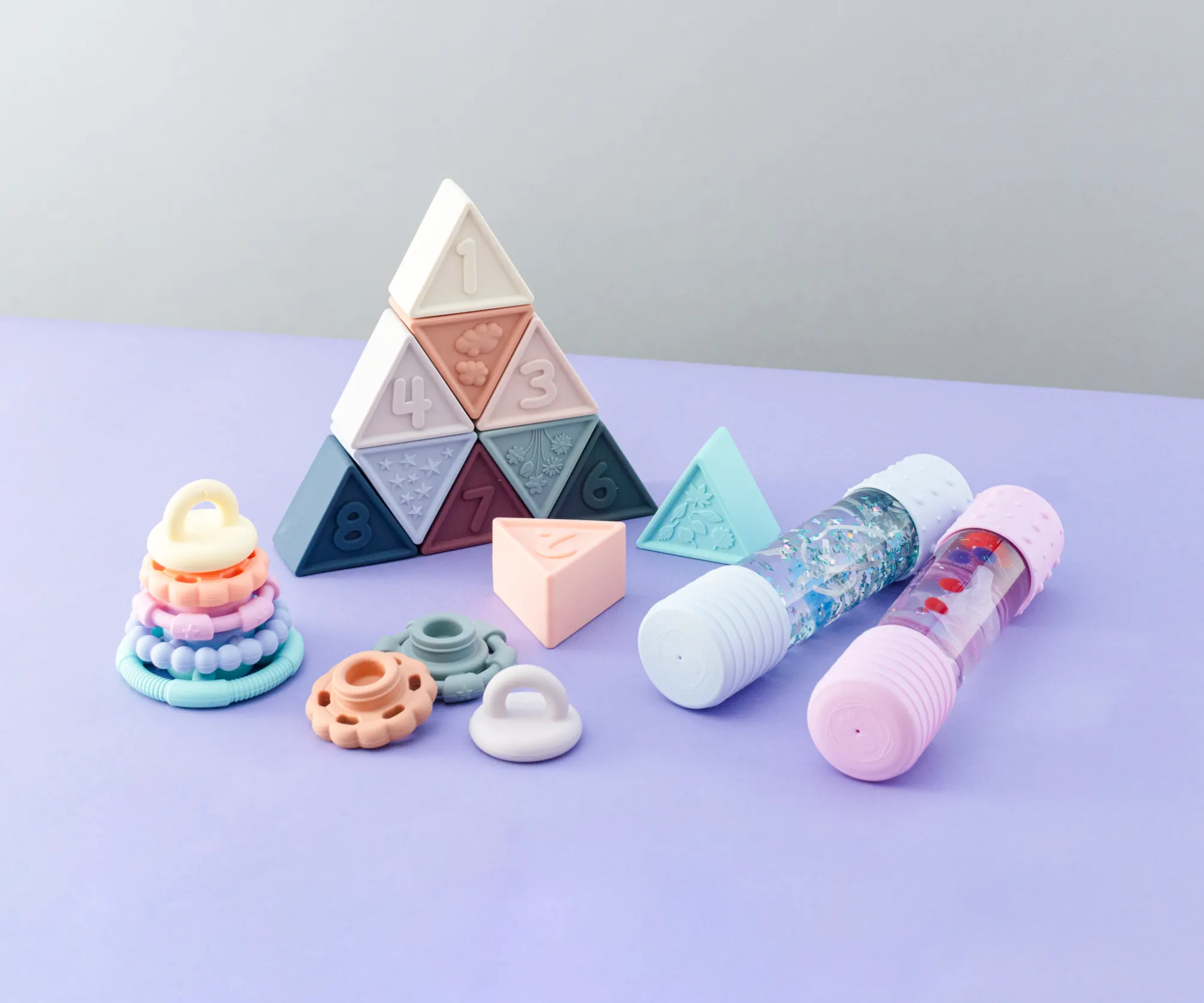 歯がため、知育玩具として、また、インテリアとしても映えるデザイン性の高さから、出産祝いとしても人気。「赤ちゃんが夢中になって遊ぶ」「色や形、質感が子どもの感性を刺激する」と、多くのママから支持されています。