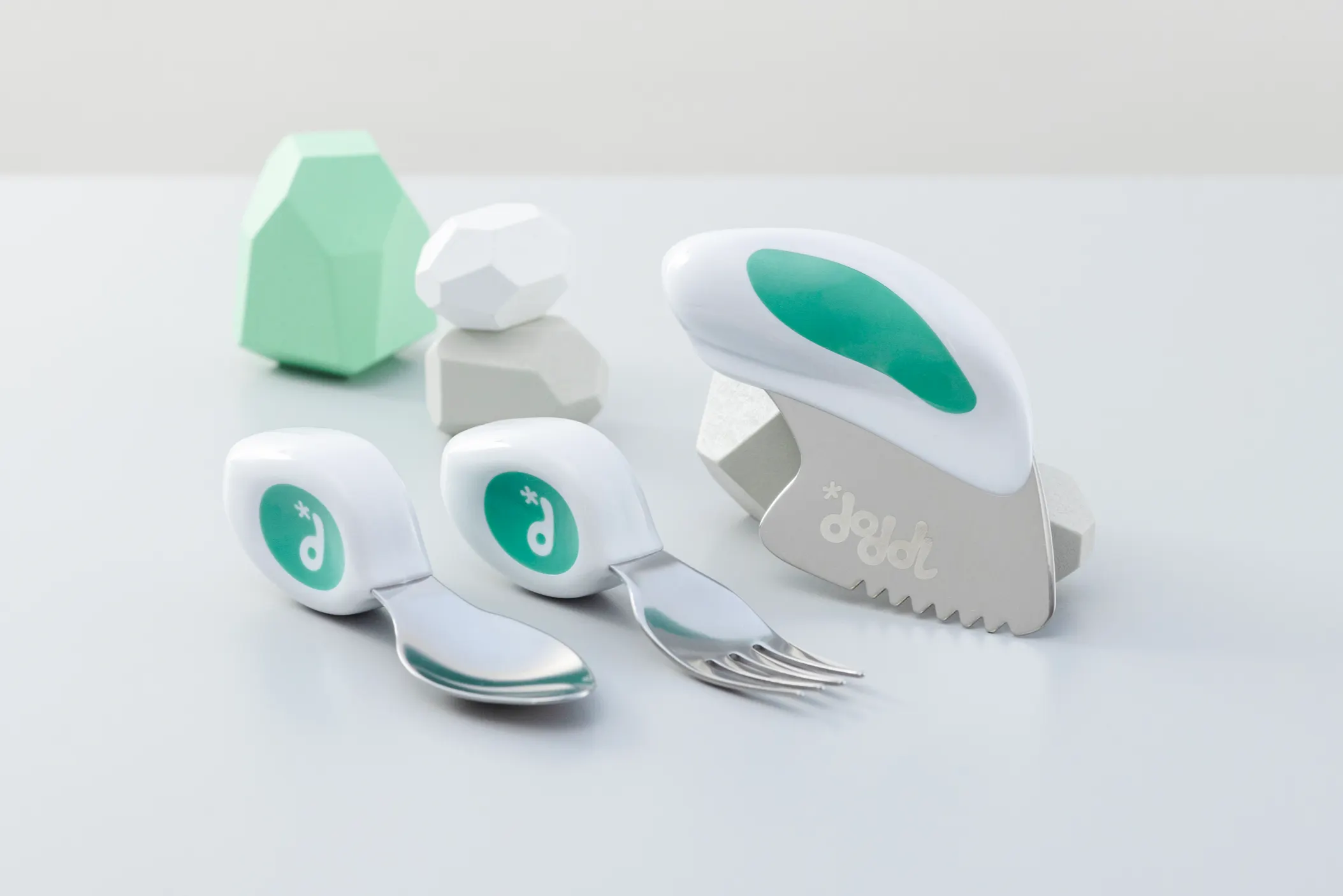 特に印象的だったのは、イギリス生まれの子ども用カトラリー「doddl(ドードル)」との出会い。人間工学に基づいたデザインで、小さな子どもが自分で食べる喜びを体験できる製品に感銘を受けました。