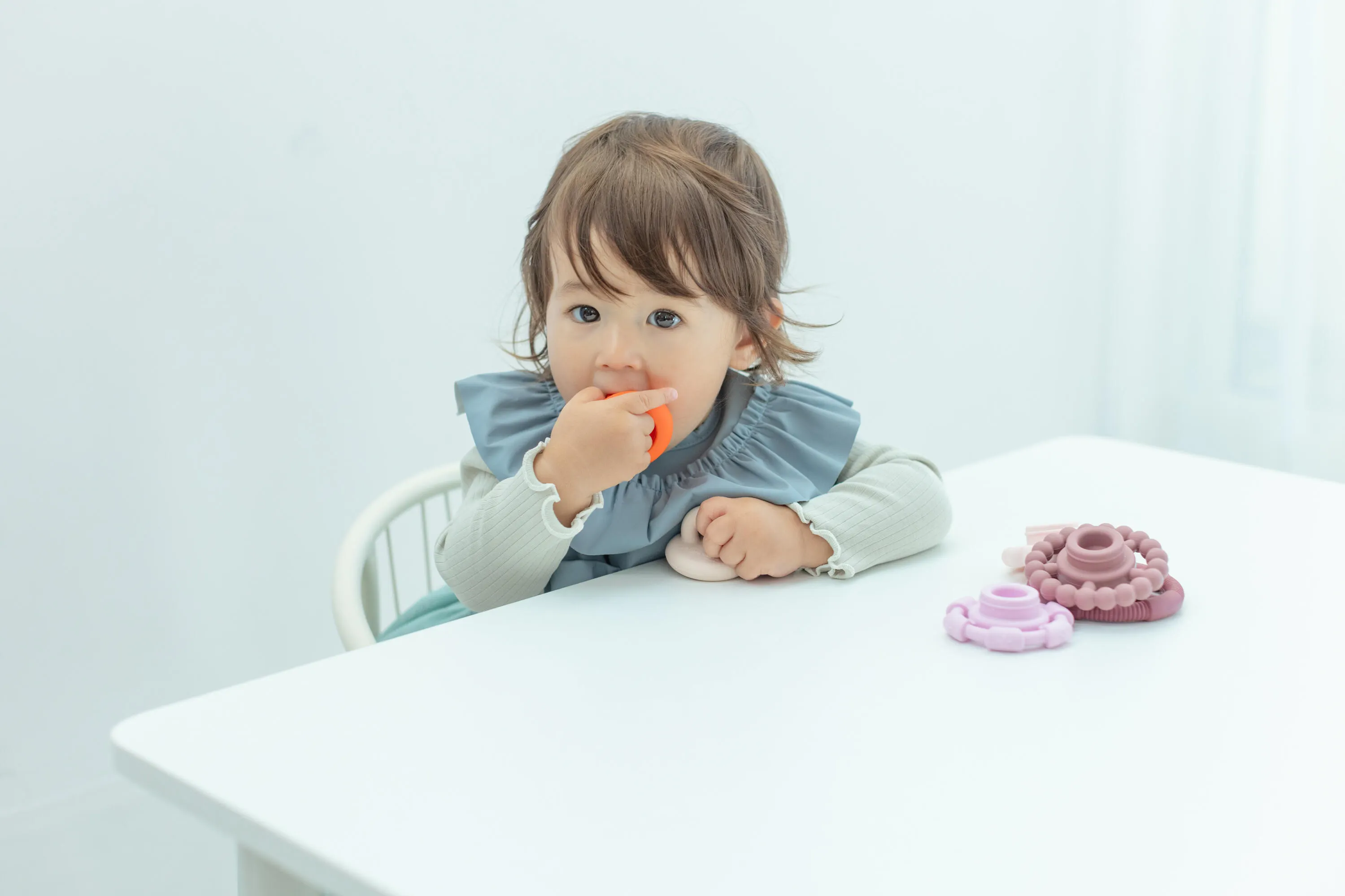 赤ちゃんの「触れる・噛む・握る」といった感覚遊びをサポートするシリコン製おもちゃ。天然ゴムの木から採取した樹液を原料とし、安全性にこだわっています。