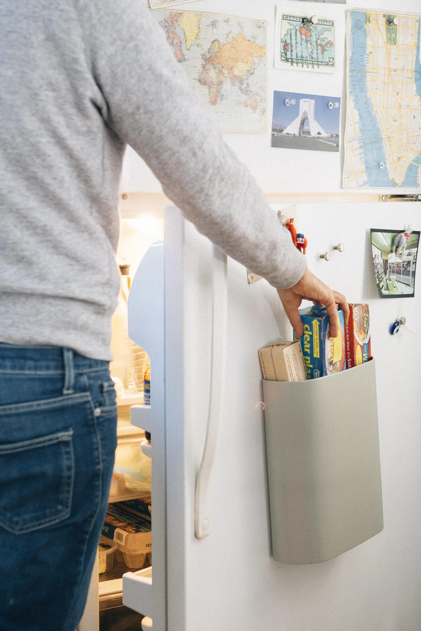 ラウンド型でマグネット付の収納グッズ。冷蔵庫や洗濯機に付けて、ちょっとした物入れに。デスクサイドでは書類入れや屑入れとしてもご利用いただけます。スリムでコンパクトなので邪魔になりません。