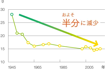 食物繊維は、すべての人の健康のために、かかせない栄養素です。でも、これほど重要さが認識されていながら、足りていない、とり続けることが難しい栄養素は、他には見当たりません。事実、日本人の食物繊維摂取量は、減り続けています。
