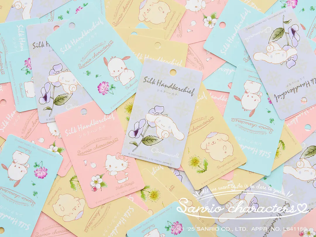ハンカチの柄にはそれぞれのサンリオキャラクターにちなんだ花柄のデザインが施されております。キャラクターだけだと子供っぽくなりがちなところ、大人っぽい花柄と合わせることでエレガントな雰囲気を醸し出します。