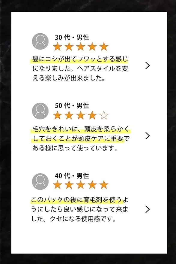 本製品は、頭皮を優しくいたわり、髪を元気にする為の頭皮パックとして開発致しました。