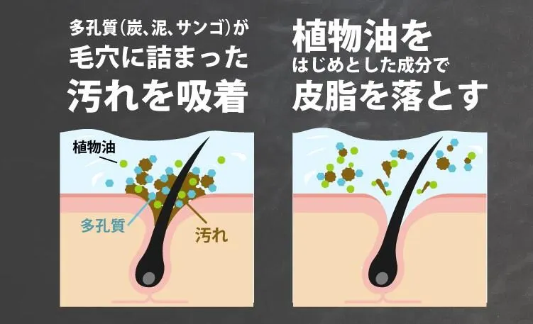 【健康な頭皮の環境づくり】 高配合した角質融解成分により、角栓を優しく融解、多孔質の海泥、炭、サンゴ末で汚れを吸着除去。毛穴をスッキリとさせます。
