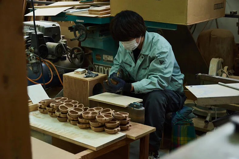 お客様からは他の木のモノとは圧倒的に違う“りんご”というシンボリックで可愛いイメージに惹かれると言われます。他の果物だとちょっと弱いそうです。またデザインや木工技術に造詣の深い方には分かっていただけるエッジの効いたところ、価格以上の技術と手間暇かけたモノ作りから、O E Mの依頼に繋がることも多々あります。