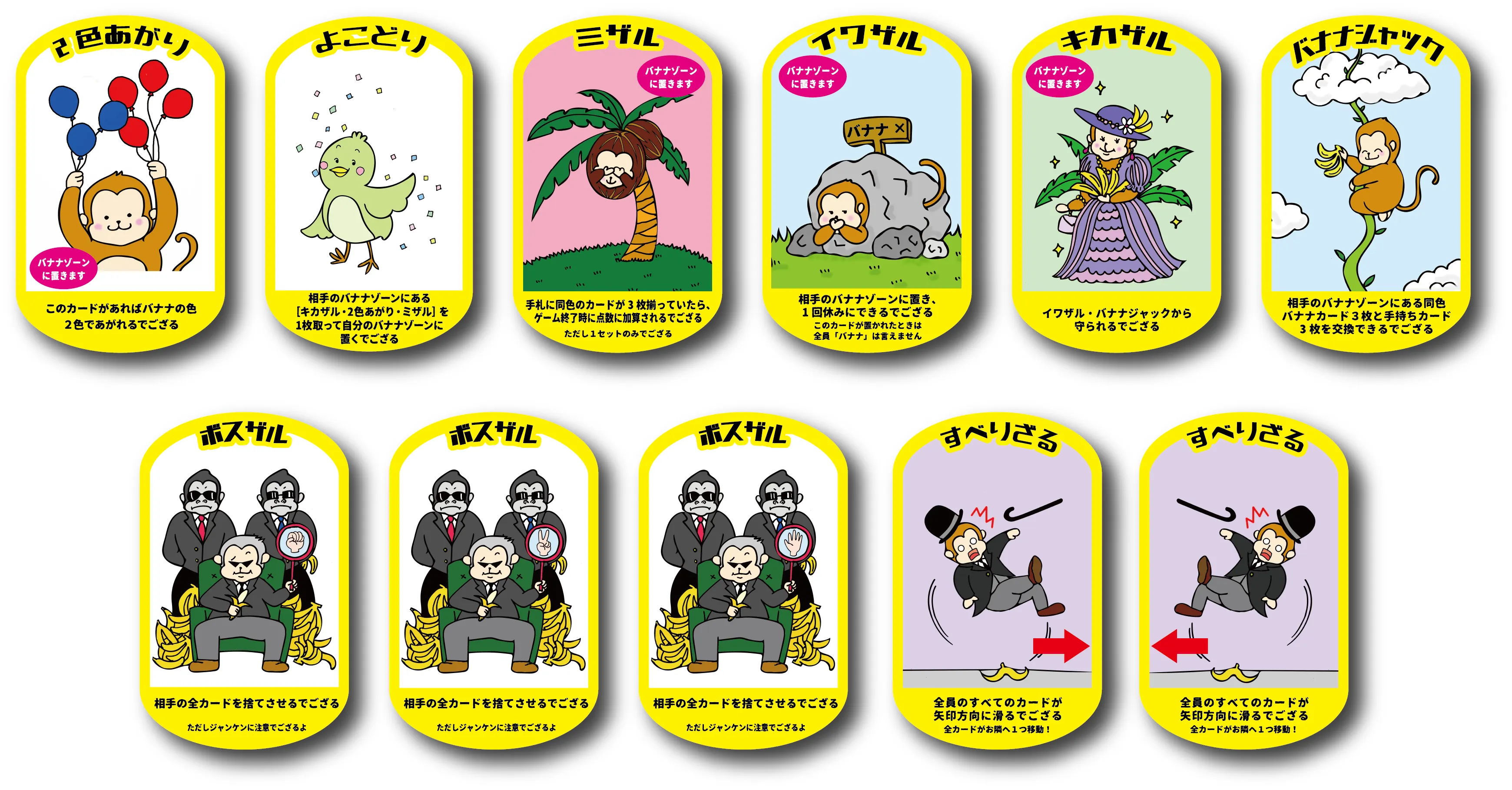 ・ゲーム中に「バナナ」と言うのが可愛いし、誰でも簡単にできて盛り上がれる新しいカードゲームだと思います。