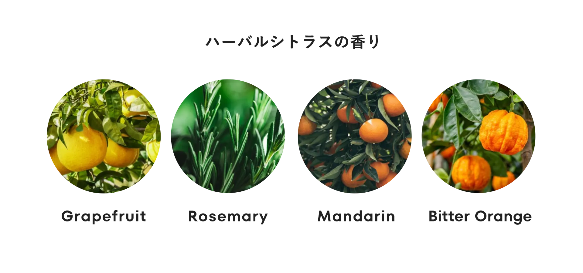 ○ ⾹りも⼀新!より爽快で⼼地よい精油ベースのハーバルシトラスの⾹り