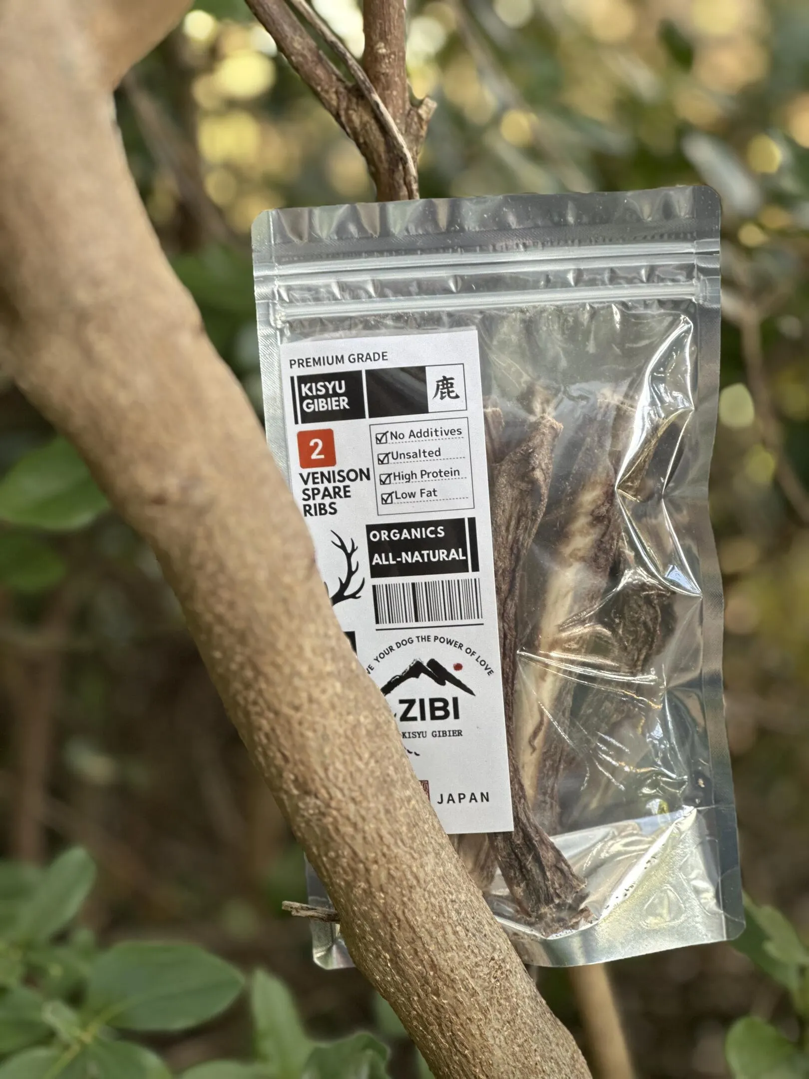 ZIBIは、紀州熊野の天然ジビエ(鹿・猪)を中心に、愛犬のためのプレミアムフードを企画・販売しています。ラインナップは、ジャーキーなどのトリーツ、ボーントリーツ(大腿骨・肩甲骨など)、冷凍の生肉(ミンチ・ブロック・スライス)まで。素材の特性に合わせて、香り・食感・使い勝手を考え、選びやすい構成に整えています。