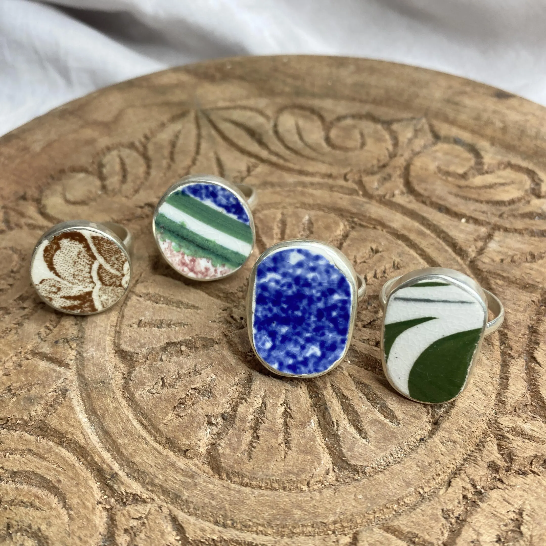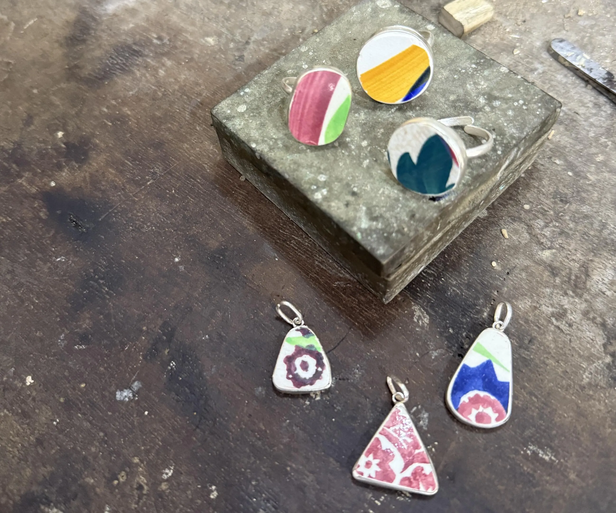 時を経て発掘され、島の職人が陶器のカケラからシルバーアクセサリーに。