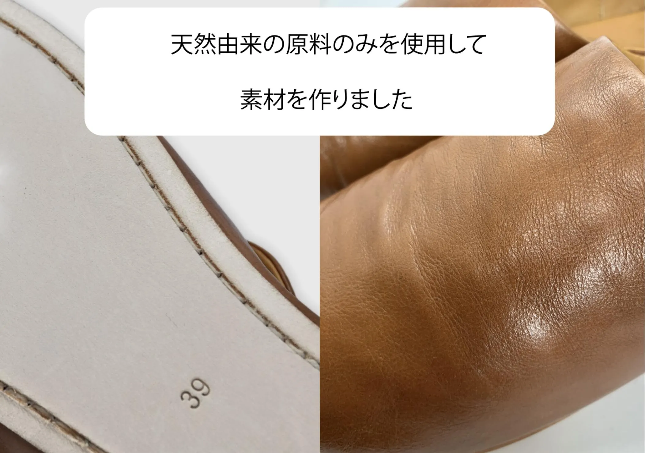 私達はインドの協力企業と共に、この商品のために北インド原産のベビーカウカーフという希少な原料を調達しました。この素材は通常の成牛のおよそ 10~20%しかない小さなサイズで、その希少さゆえに海外では高級な製品に使用されています。この素材と天然由来のタンニンを使用して伝統的なピット鞣しの技術で独特な風合いの革に仕上げることが出来ました。