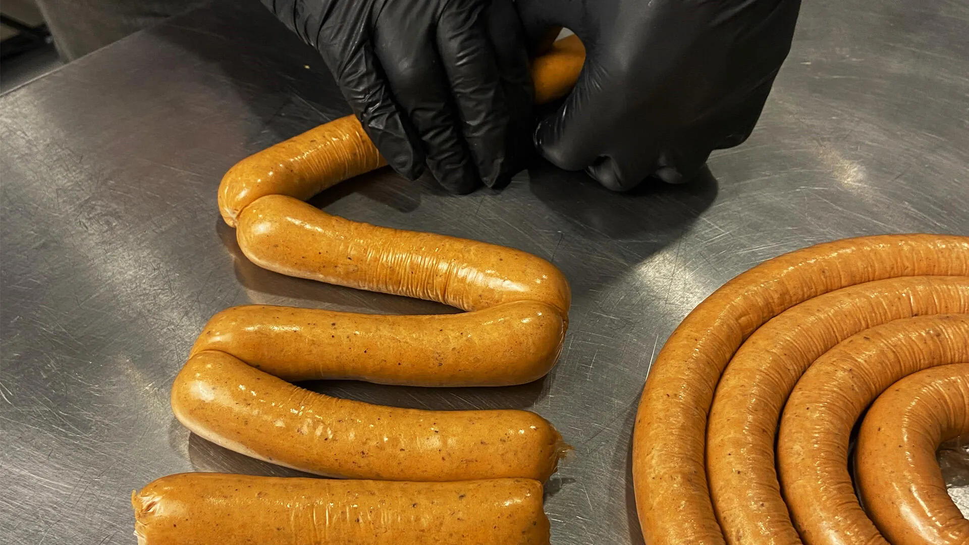 主力商品であるプラントベースソーセージは、欧州の伝統的なソーセージ作りの技術を活かしつつ、革新的なアイデアを取り入れたこだわりの製法で作り上げています。単なるビーガン食品にとどまらず、味わいや質感に細部までこだわり、肉にも引けを取らない満足感を追求しました。ひよこ豆、発酵大豆、こんにゃく、ココナッツオイル、海藻といった厳選された植物由来の素材を使用し、ジューシーでコクのある味わいを実現しています。そのまま焼いても、煮込み料理やグリル料理にも使える多用途な一品です。