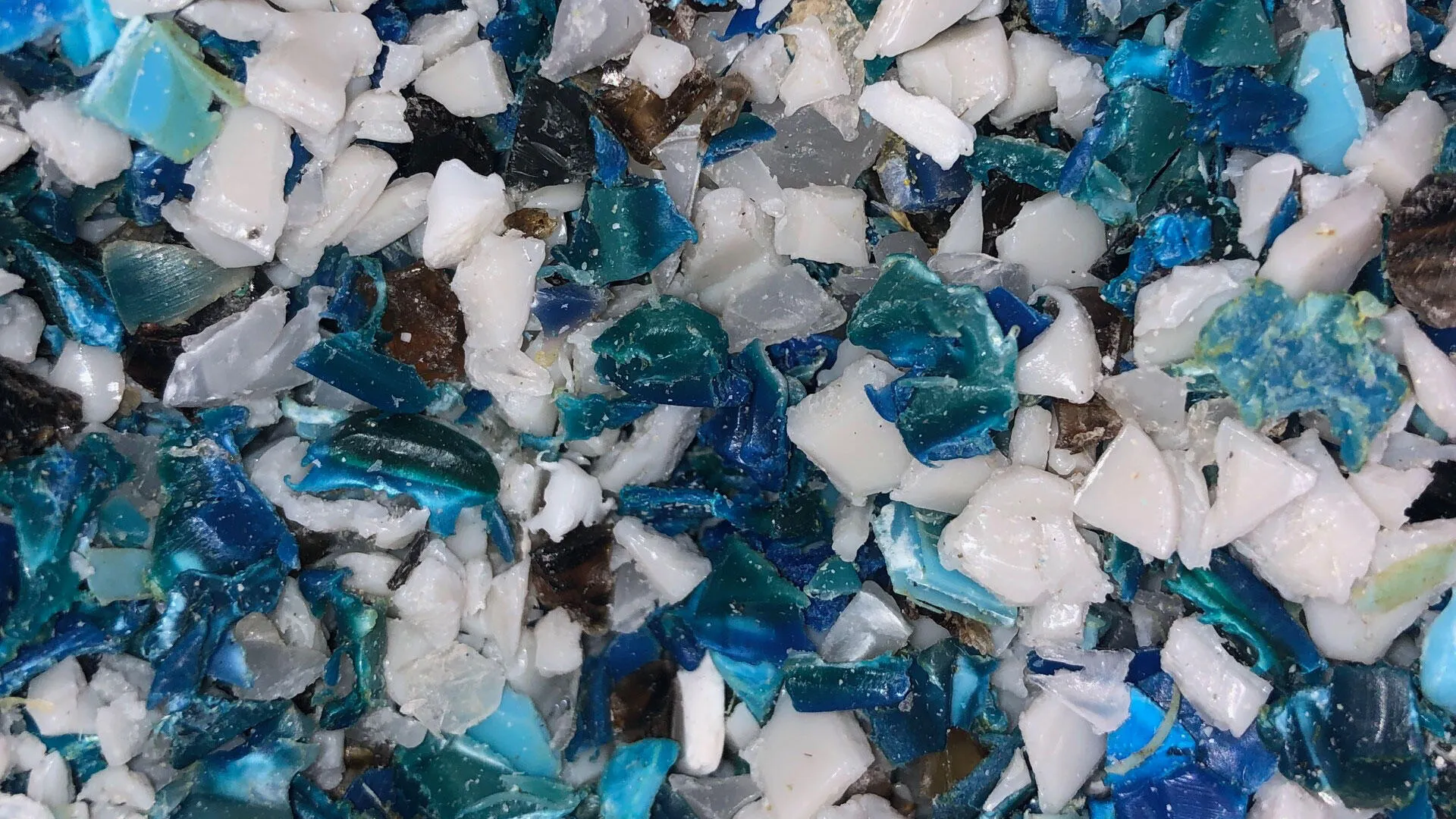 日本全国から集めた海洋プラスチックを細かく粉砕し、色を調色します。