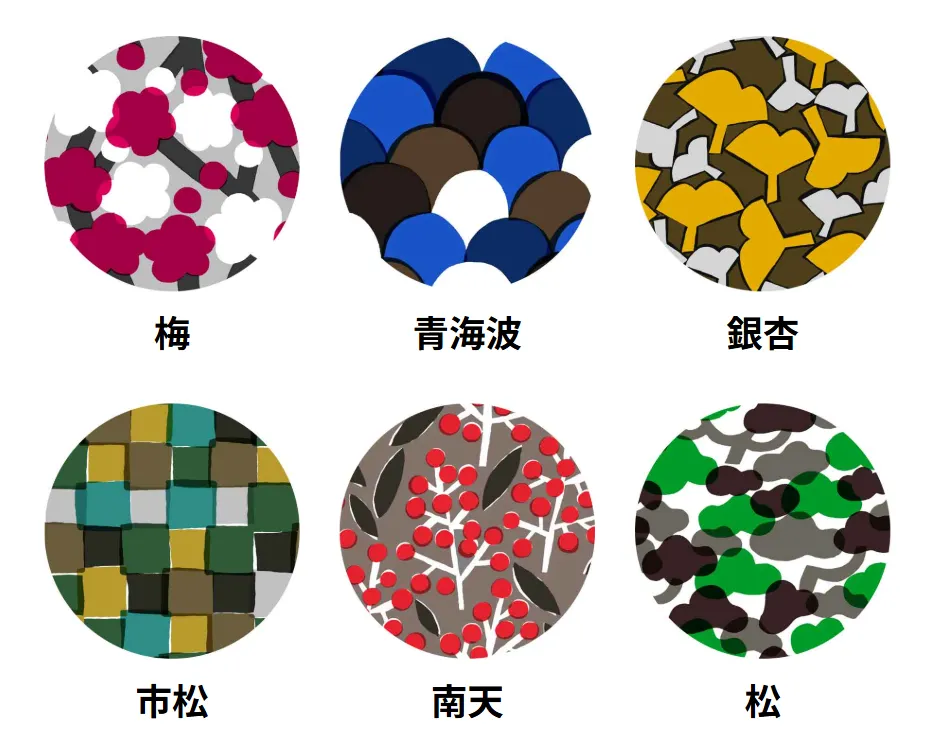 Fuwa Marketのデザインのベースになっているのは、松・梅・青海波などの縁起のよい伝統文様です。日本では古くから、長寿や繁栄、幸せが続くといった意味が込められてきました。