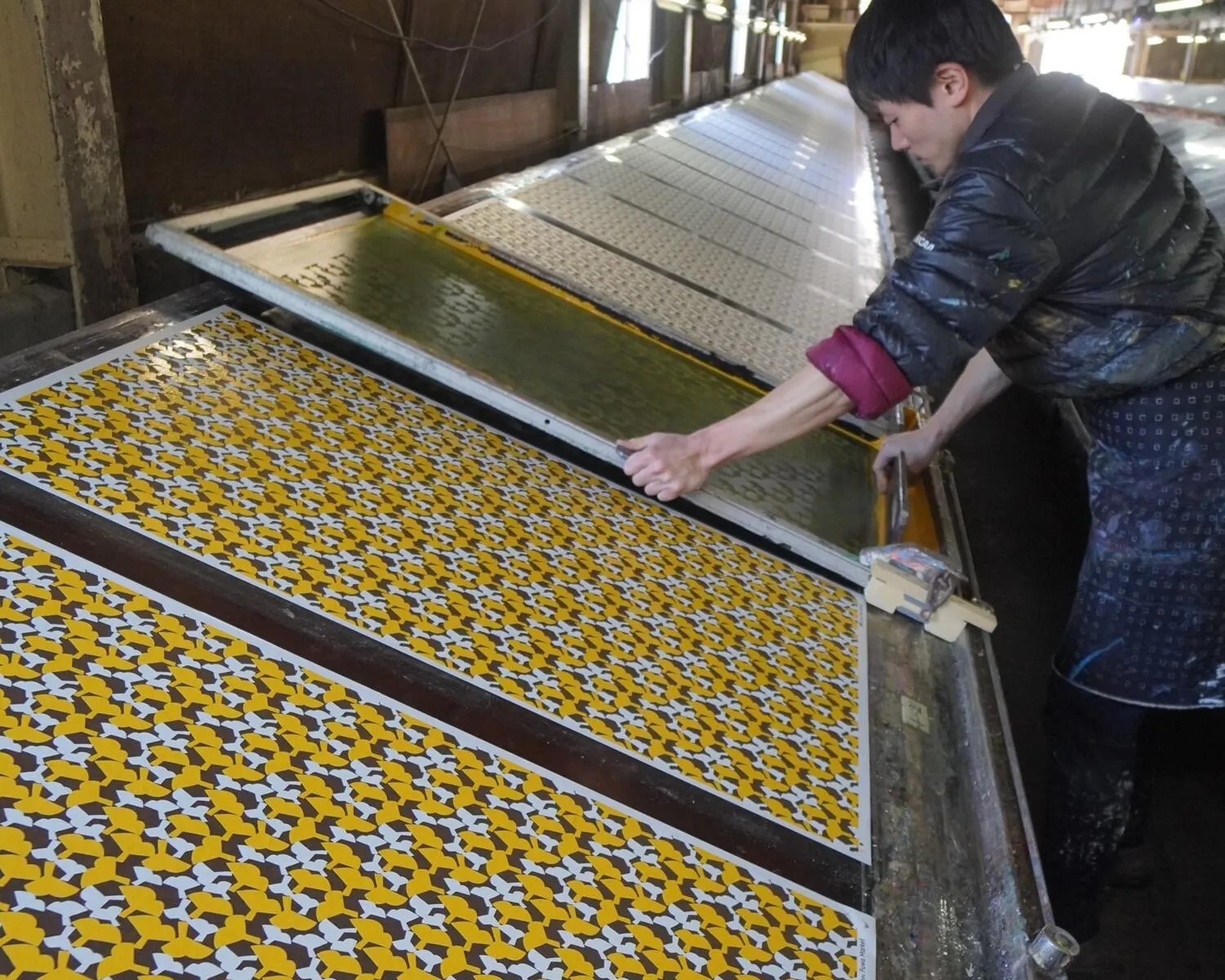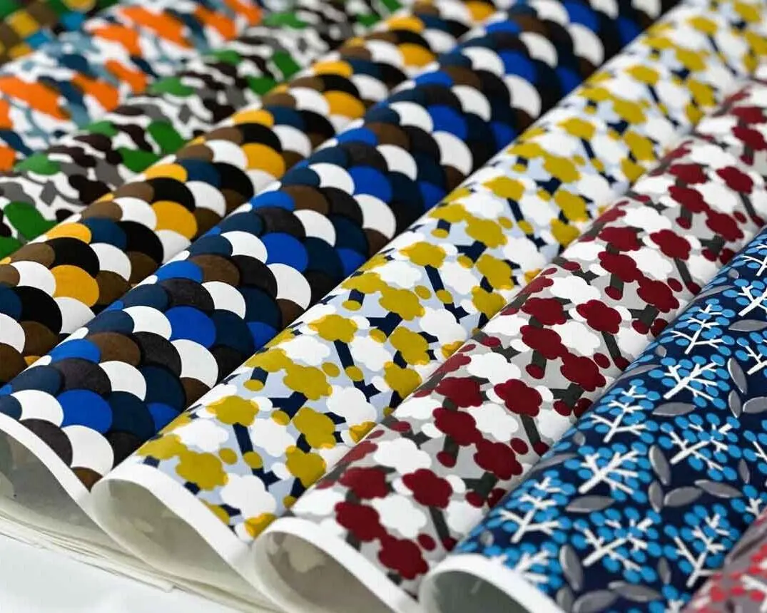 そのテキスタイルをもとに京都の染色工場を訪ね、和紙は友禅和紙の染色工場、布は京都の染色工場に相談し、オリジナルの和紙と布を作りました。