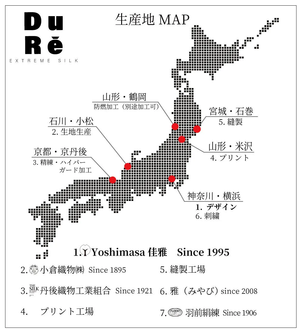 しかし現代では横浜だけでスカーフ作りを完結することは難しくなってきております。そこで日本各地の老舗企業と開発して「Feuille de Cocoon フィーユ ド ココン」が完成しました。