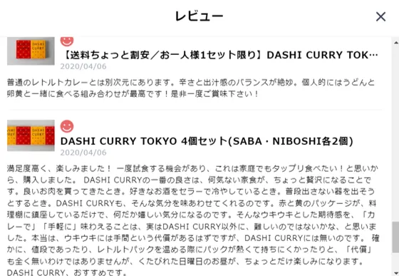 主な販路は自社ECで、大きな宣伝活動を行っていないことからリピーターに支えられている商品です。カレーマニアというよりは、グルメ感度の高い可処分所得に余裕のある30代以上の女性が顧客の中心です。