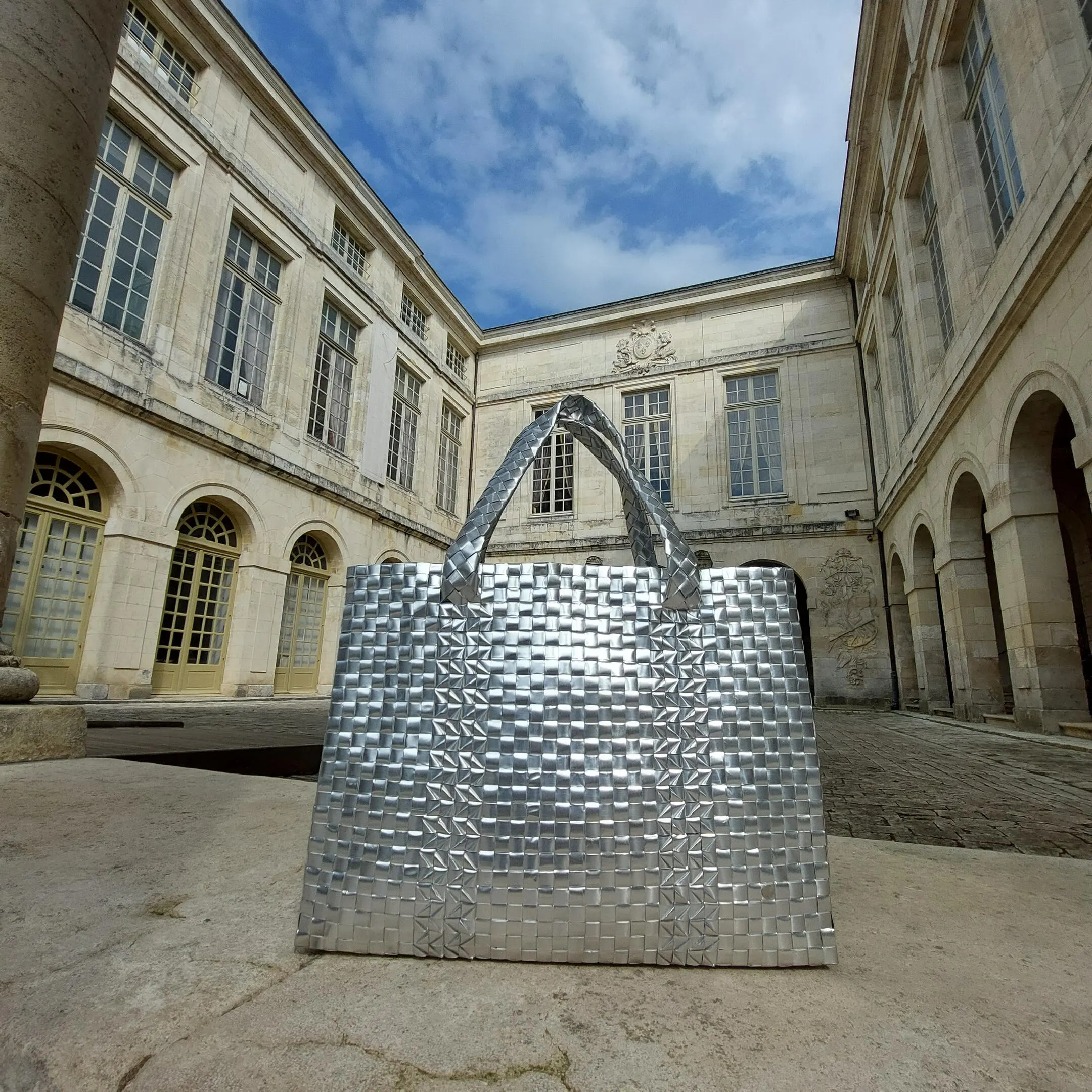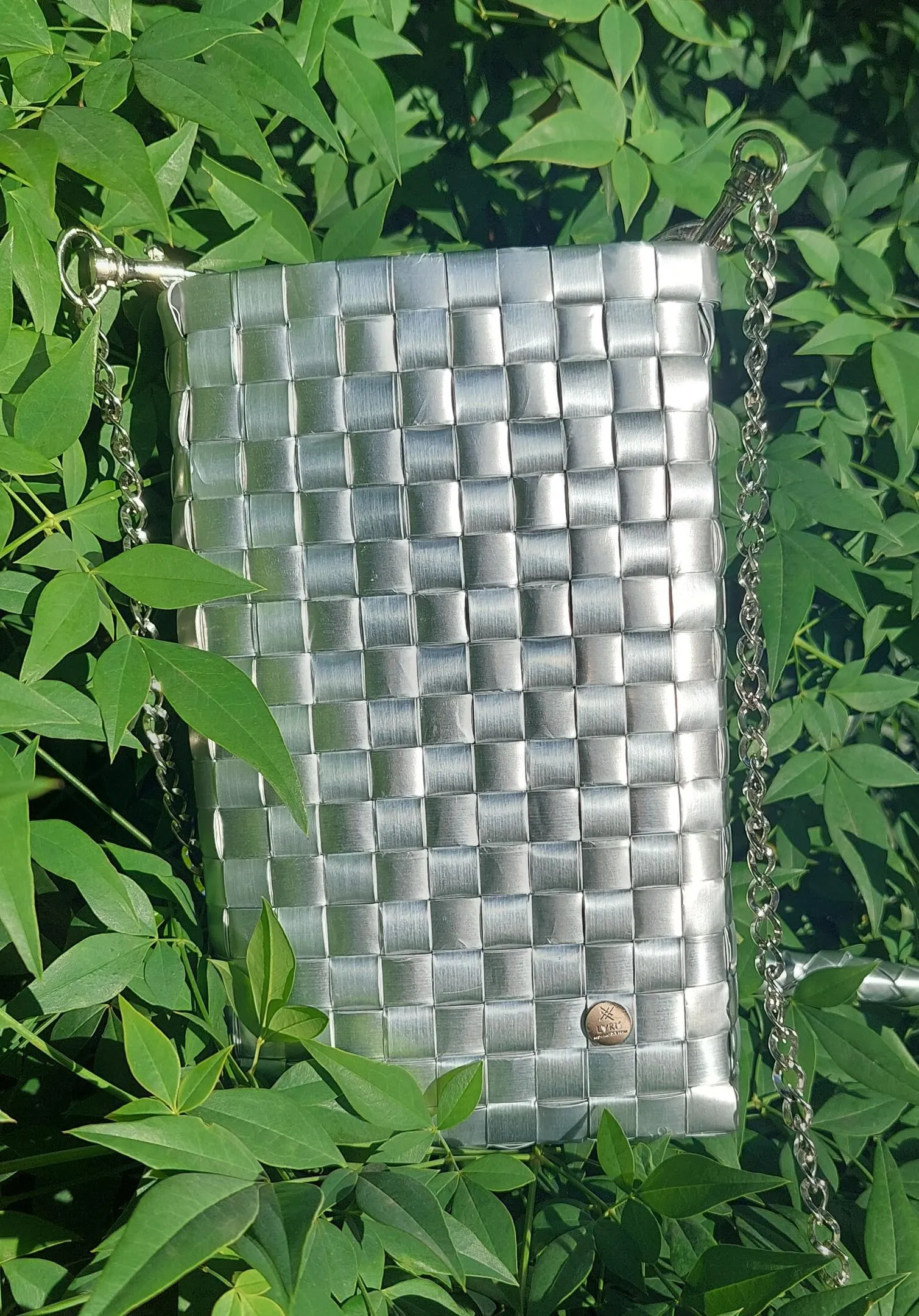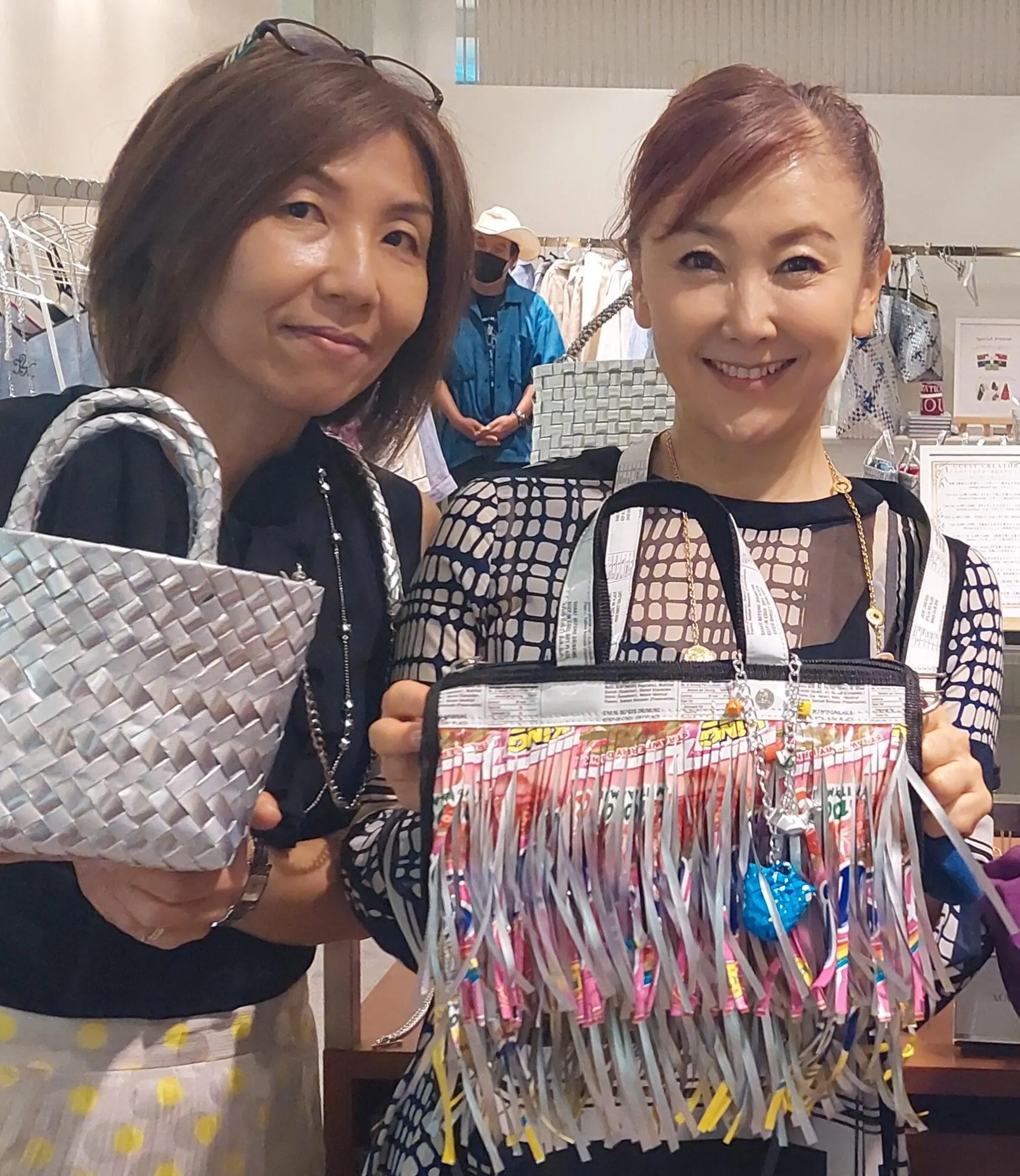 たまたまご縁があり、あるNGOの工房を見学させてもらいました。そこでは、飲み終えたジュースなどのアルミパックを収集・洗浄し、その素材を使ってバッグやサンダルなどを作っていました。キラキラ輝くアルミリボンが山のように積まれ、それを一本一本手作業で編み上げる女性たちの姿と、彼女たちが作るバッグの美しさに衝撃を受けました。まさに「一目惚れ」でした。