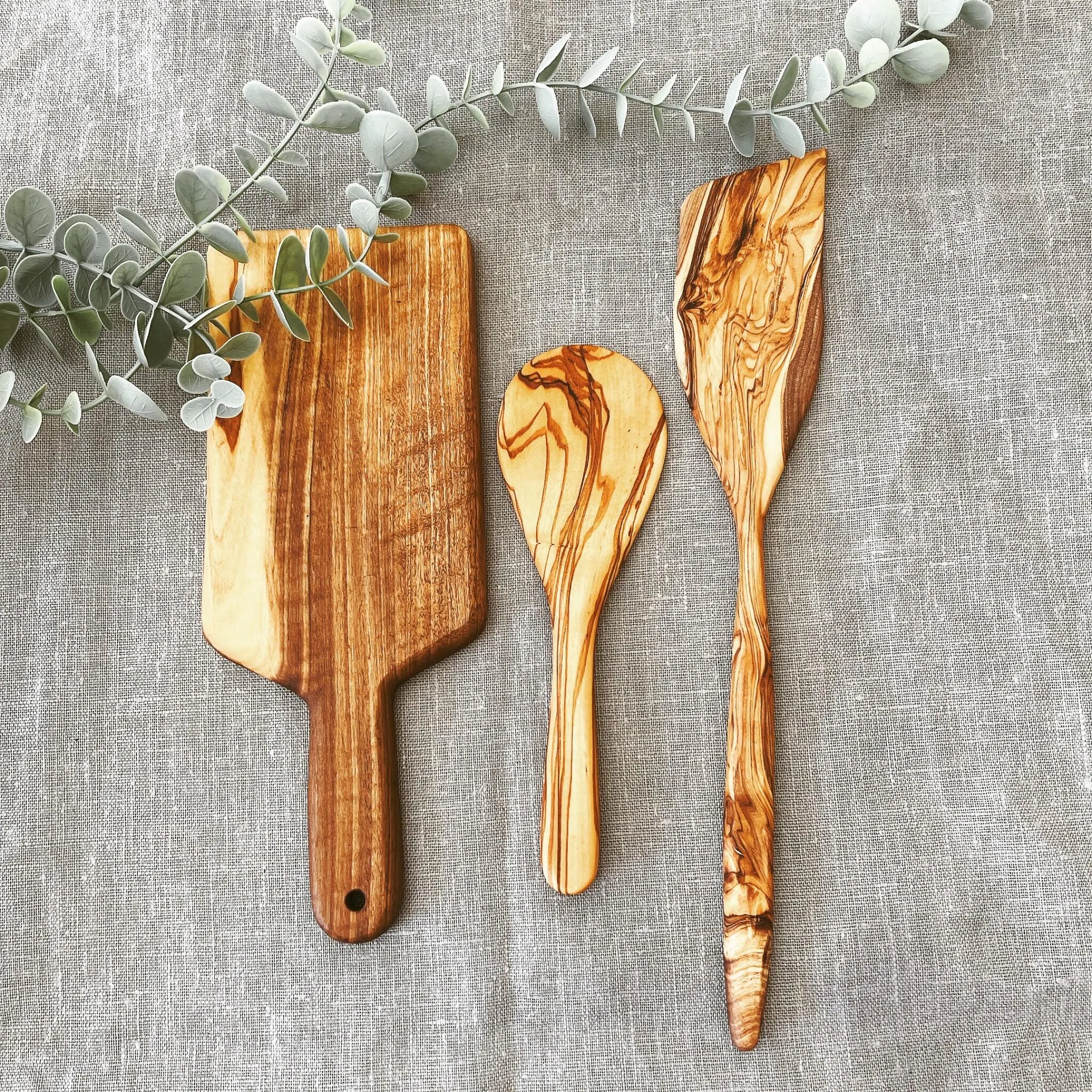 「木ベラは細めでスタイリッシュ、他にはあまりないデザインですね」