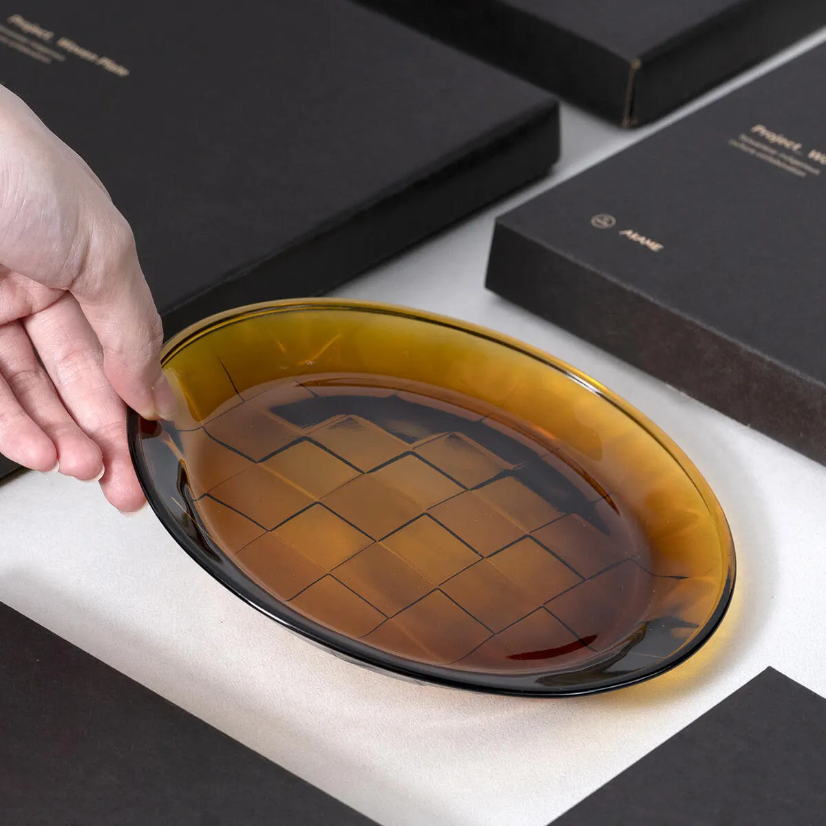 食卓を華やかにするこだわりの琥珀(アンバー)色の新しい食器です。
