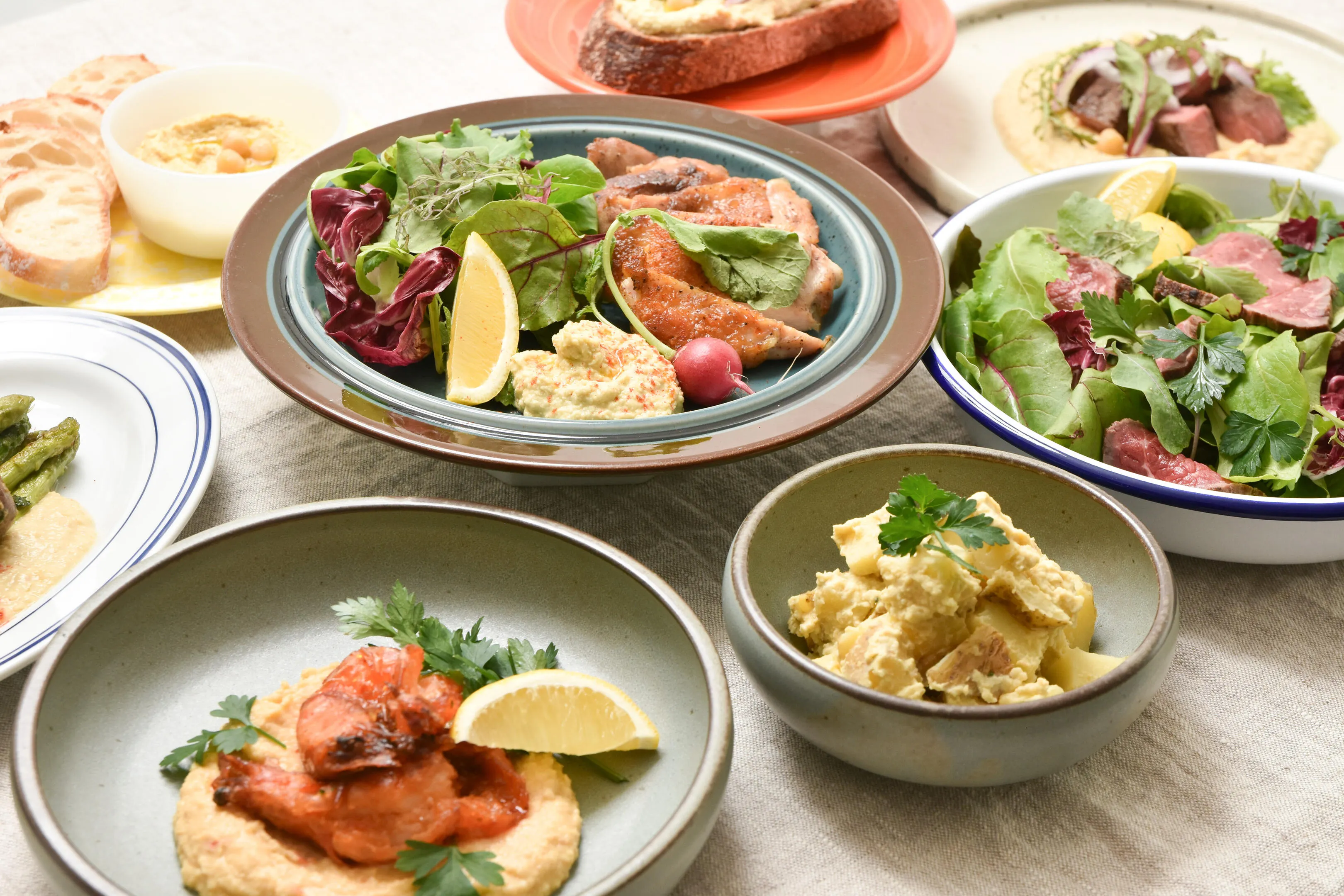 中東諸国では朝昼晩、時間を選ばずどのシーンでも食卓に並ぶひよこ豆のペースト「フムス」。現地ではピタパンや野菜につけて食べるのが一般的ですが、その万能さに魅了されました。