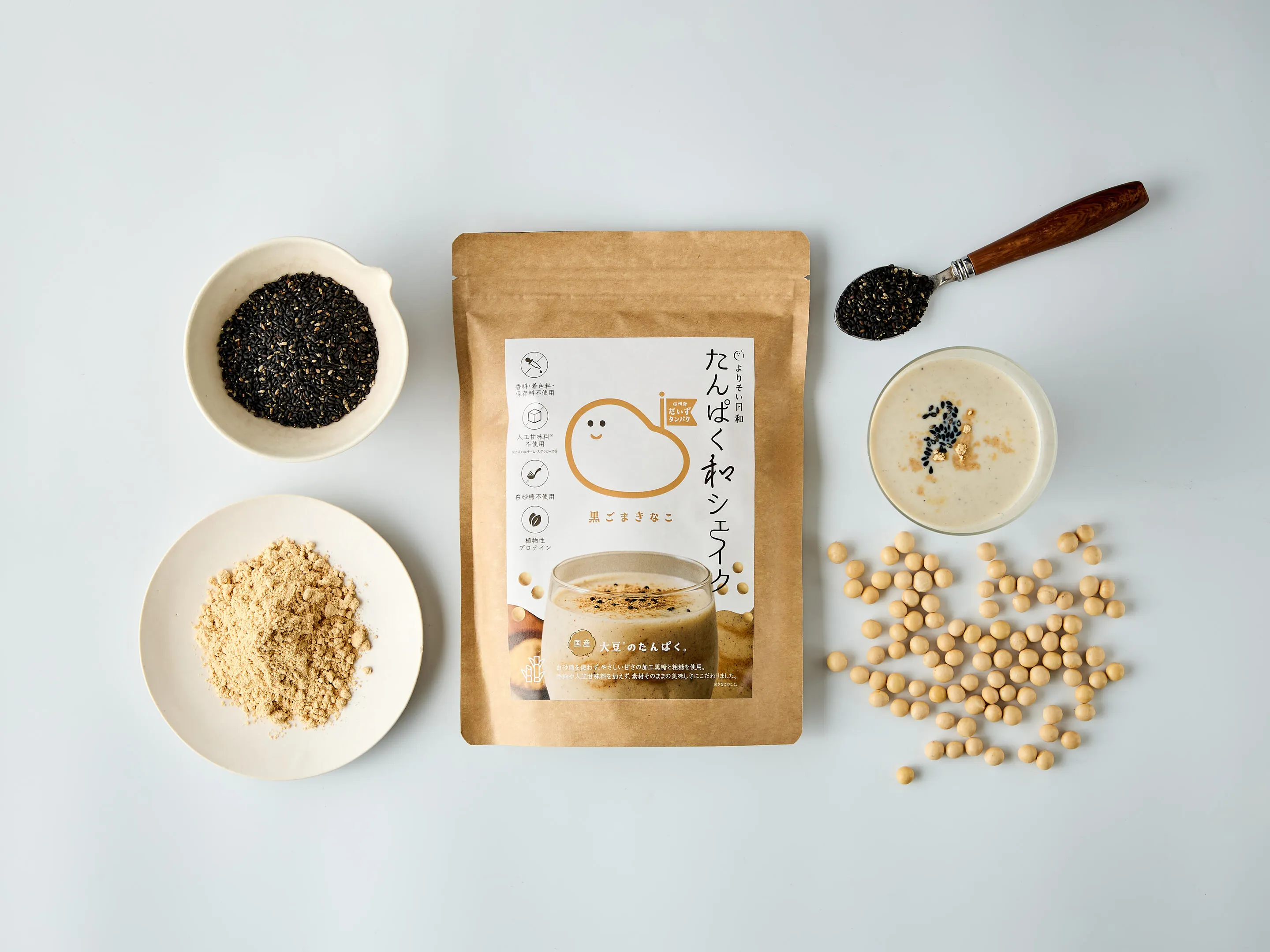 きなこ×黒ごまの和素材を活かし、プロテイン特有の風味を抑えた