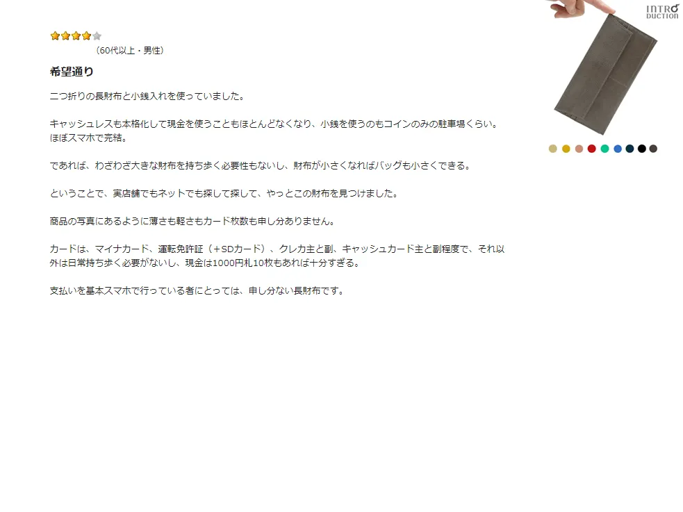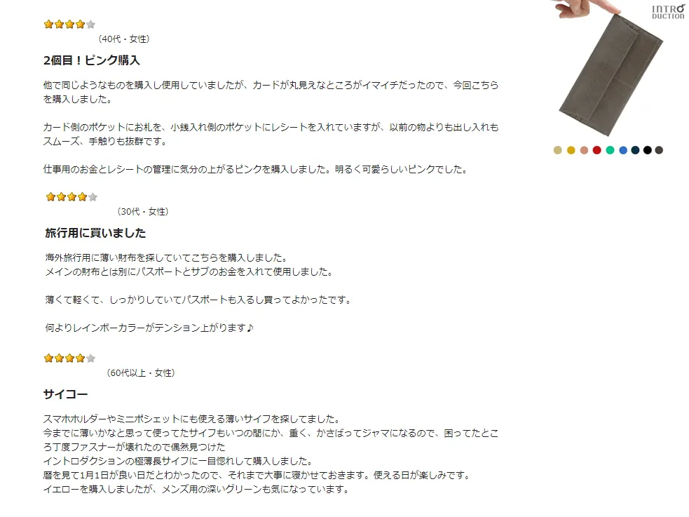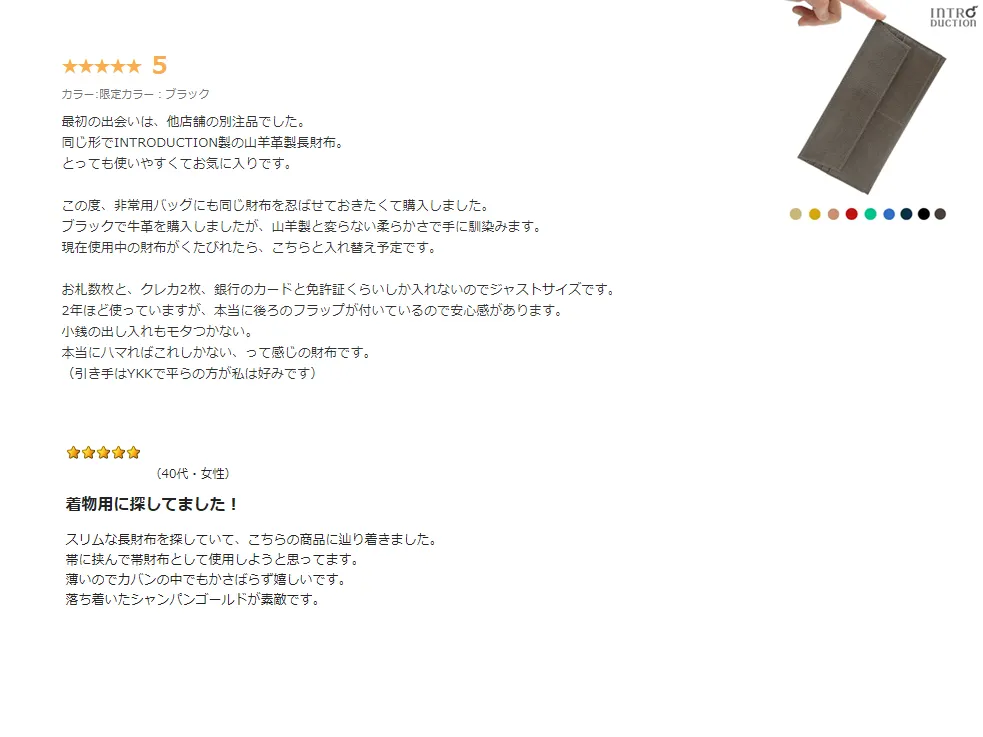 ポケットウォレットは定番色に加え、シーズン毎の限定色、限定柄をリリース。買い換え需要にお応えできるよう、リピーター様への提案もフォローしています。
