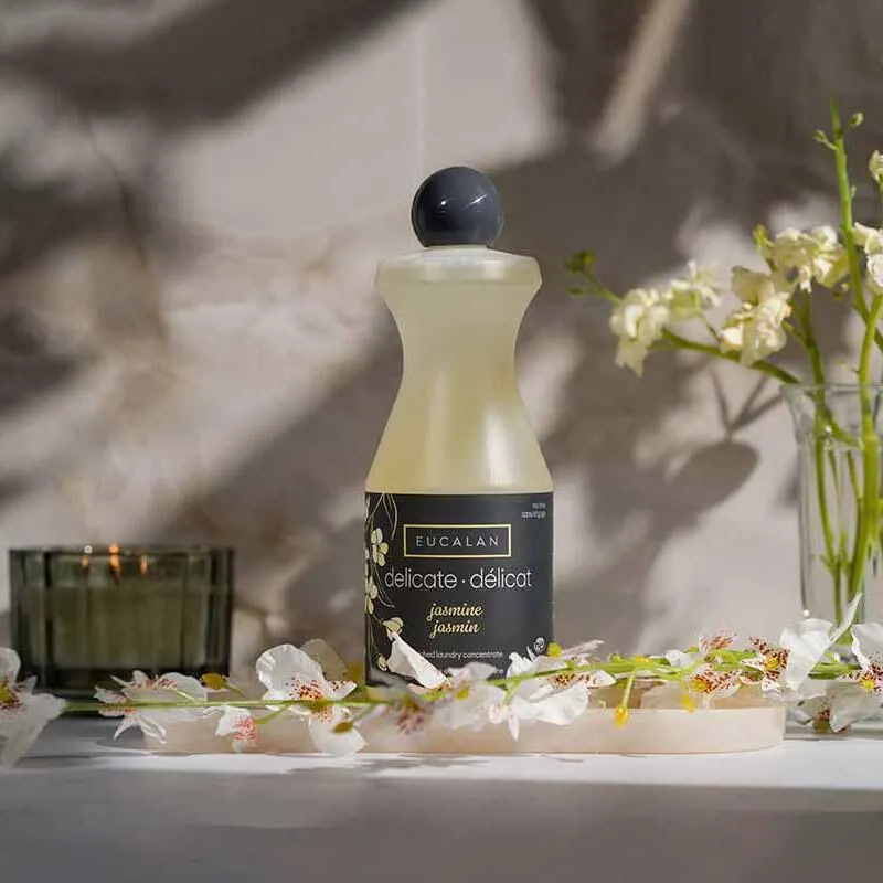 「ユーカラン ジャスミン」は、華やかで甘く印象的なフローラルの香りが、洗濯中から乾かした後までふんわりと漂います。女性らしくエレガントで深みのある香りが、ランジェリーとも相性が良く、ファンの多い香りです。ジャスミンの精油に含まれる天然の防虫・抗菌効果が洗濯後も続き大切な衣類を守ります。