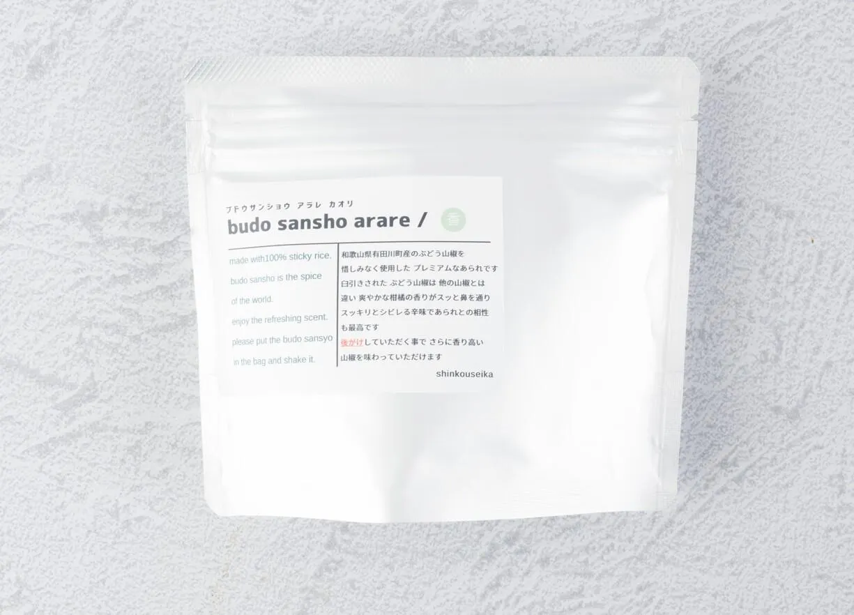 は、伝統の技と厳選した素材で仕上げた特別なあられです。一粒一粒に職人の技が光り、臼で丁寧に挽かれた山椒は、一般的なものとは一線を画す爽やかな柑橘系の香りが特長。