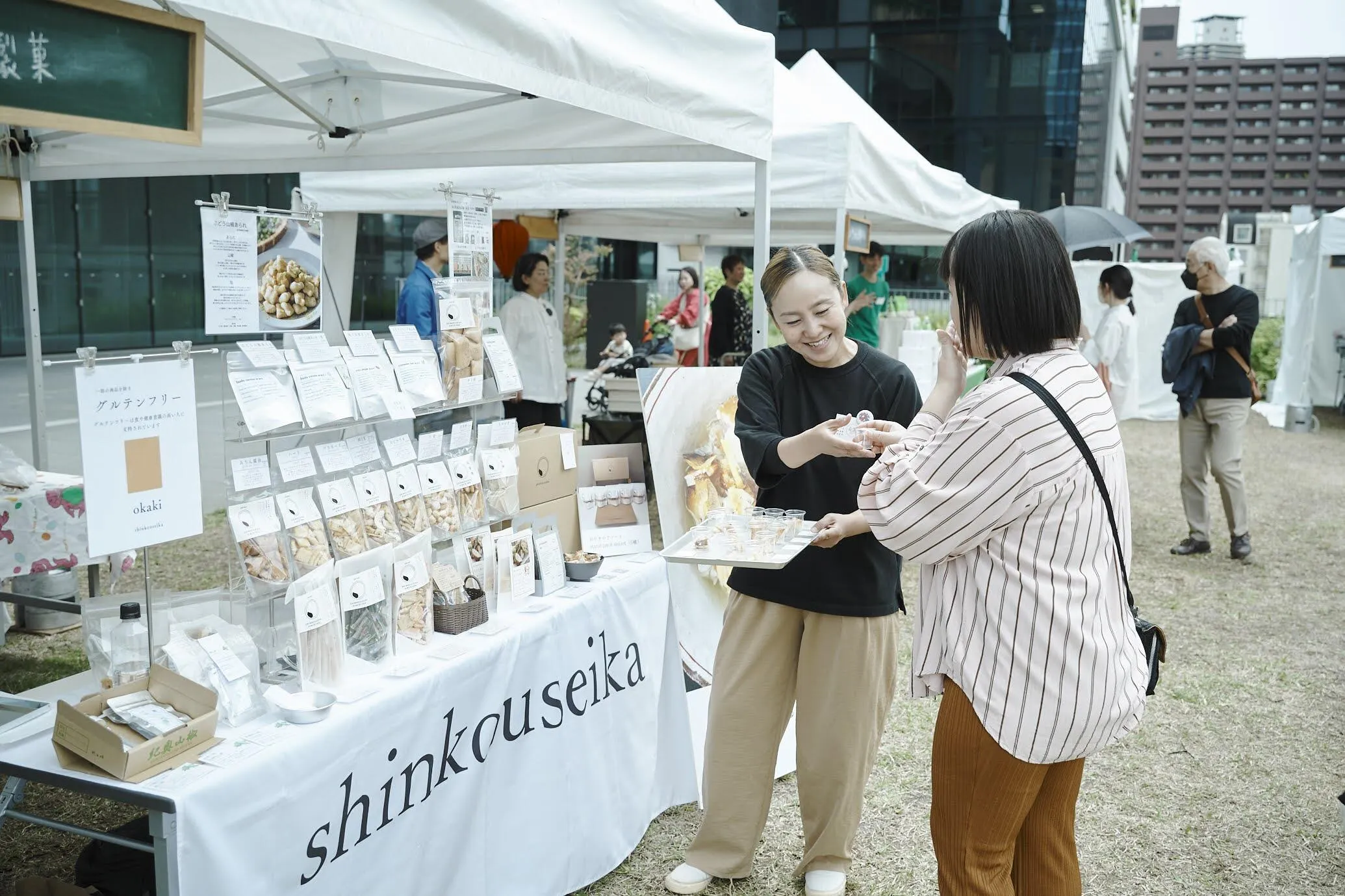 また、地方のマルシェにも足を運び、さまざまな生産者の方々と出会うことで、地元の素材や人々の誇りが詰まった物語を学び、その思いをあられ一粒一粒に込めています。