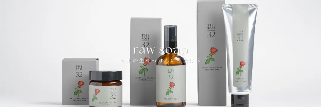 弊社(kalaku-labo)は、2003年から九州の海辺で小さな無添加石けん工房を営み、30代で始めた創業者が50代となり、田舎暮らしにピリオドを打ち、自身の最後のブランドとして、代表自身と同世代の乾き肌にアプローチした極上の「生せっけん」を研究開発したことが THEROSE32スキンケアブランドの誕生となりました。