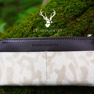 URUSHINASHIKAは山梨県の登録商標です。これまで廃棄されてきたニホンシカの皮を県の伝統工芸の一つである甲州印伝に有効利用しようというプロジェクトです。