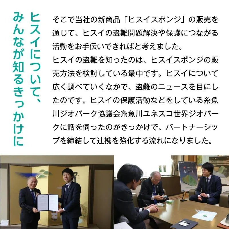 地元の誇りと実用性を兼ね備えた、これまでにないスポンジを作りたい。そんな想いから「ヒスイスポンジ」は生まれました。