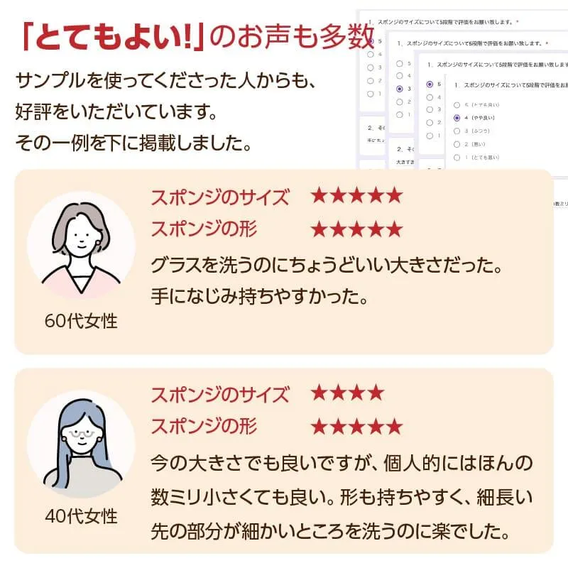 お客様からは「見た目がかわいくて、使い心地も最高!」「こんなスポンジ初めて!」という嬉しい声をたくさんいただいています。毎日の洗い物が楽しくなる、そんな特別なスポンジです。