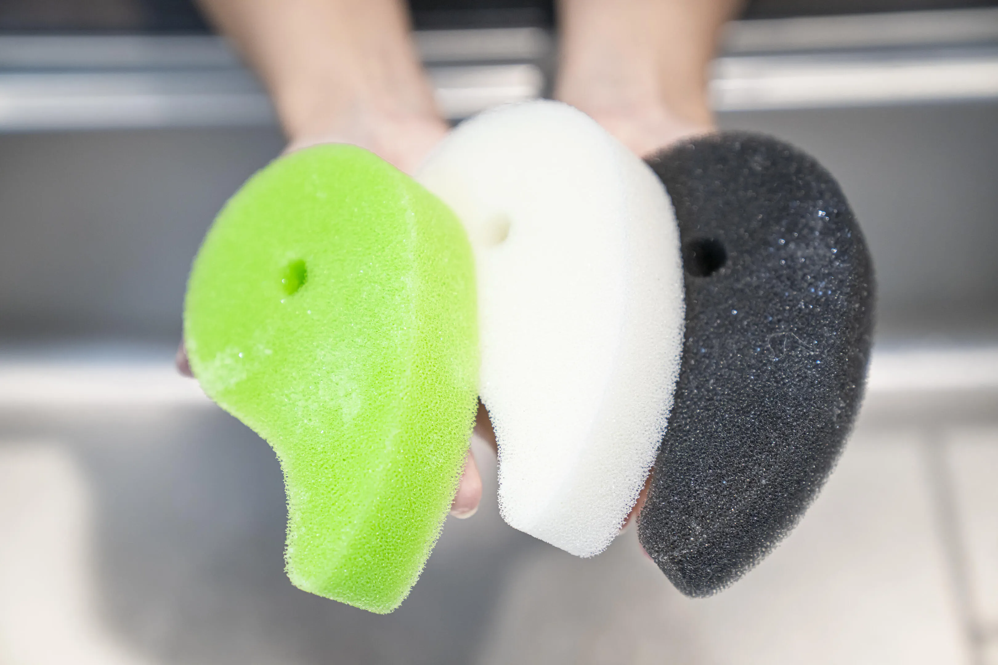 素材にもとことんこだわっています。適度な発泡密度のポリウレタンフォームを使用することで、少量の洗剤でもモコモコの泡立ち!水切れも抜群で、型崩れしにくい弾力性も自慢です。
