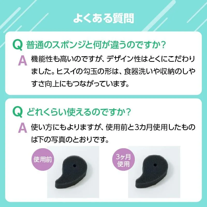 ヒスイの最大産地である糸魚川で生まれたヒスイスポンジ。 勾玉の形をしたこのヒスイスポンジは、機能性を追求しながらも美しいデザインを兼ね備えた台所用スポンジです。