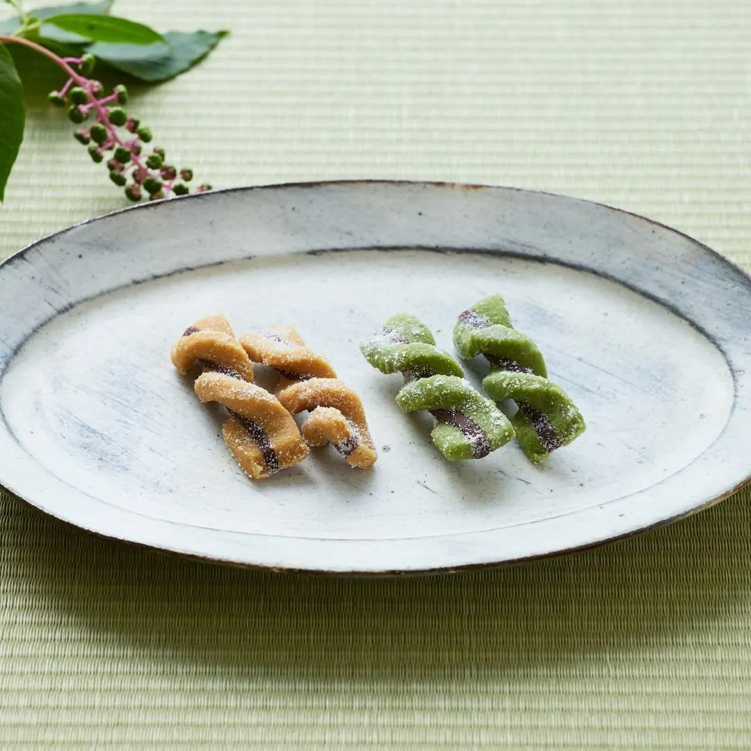 北海道産の小豆餡を五家宝の生地で挟んだ、口溶けの良いきな粉のお菓子。東京大島産の塩を隠し味に使用しています。くるんとねじれた見た目も可愛らしく、味もホッとする優しさが特徴。全国菓子大博覧会で金賞を受賞した逸品です。国産小豆使用で、ひとくちでホッとする和のおやつとして、お茶のお供にぴったりです。