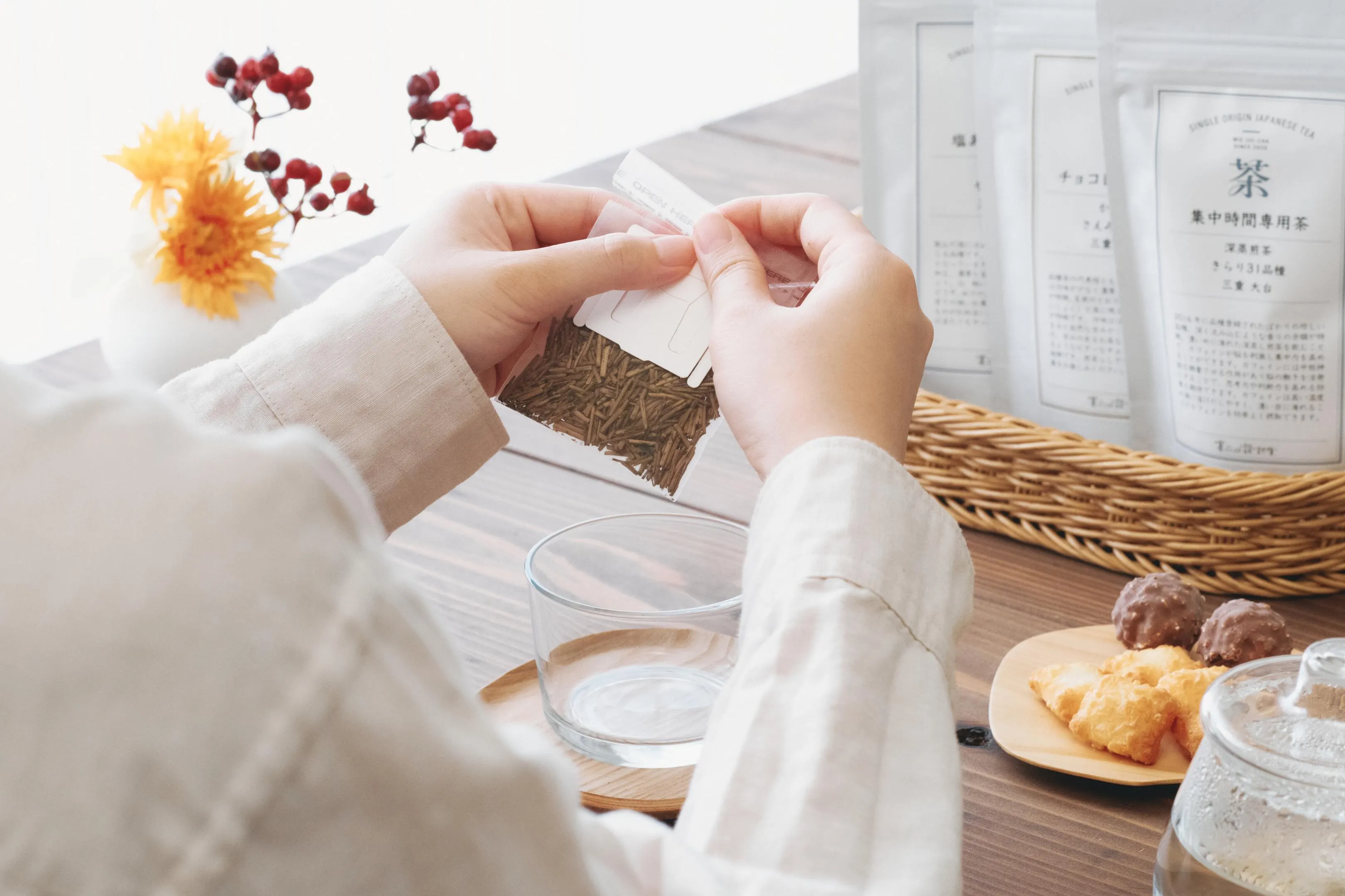 日本茶カフェ実店舗の運営で培ってきたノウハウを活かし直接生産者より最上級の茶葉を仕入れています。抽出時にも茶葉がしっかりと広がる「ドリップバッグ」を採用。