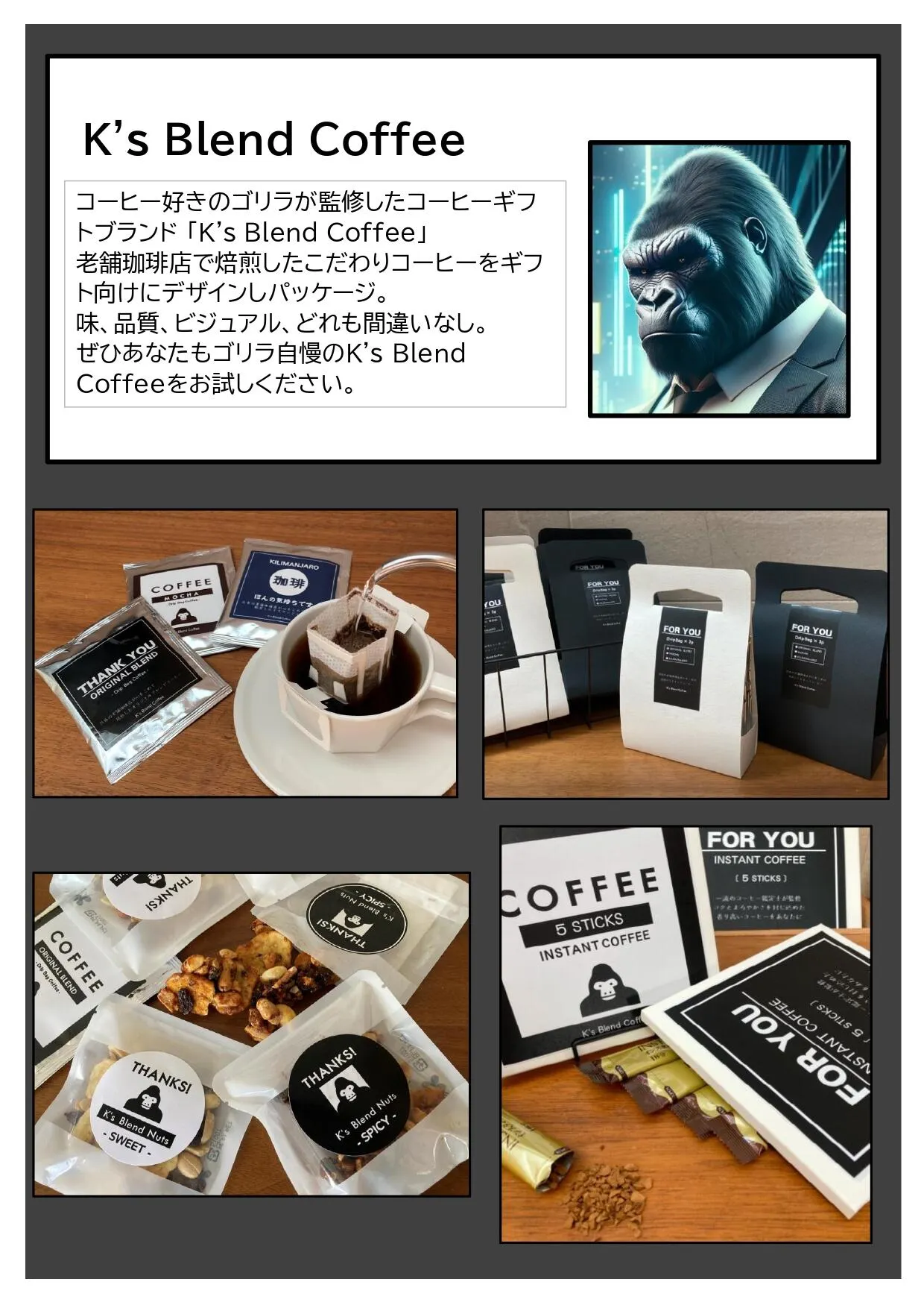 コーヒーをこよなく愛すゴリラが監修した「K'sBlendCoffee」。 老舗珈琲店で焙煎したこだわりコーヒーのギフトは、味、品質、ビジュどれも間違いなし
