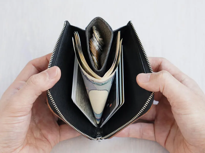 ・財布が大きく開き、カードの選択やお札の出し入れがしやすいこと。