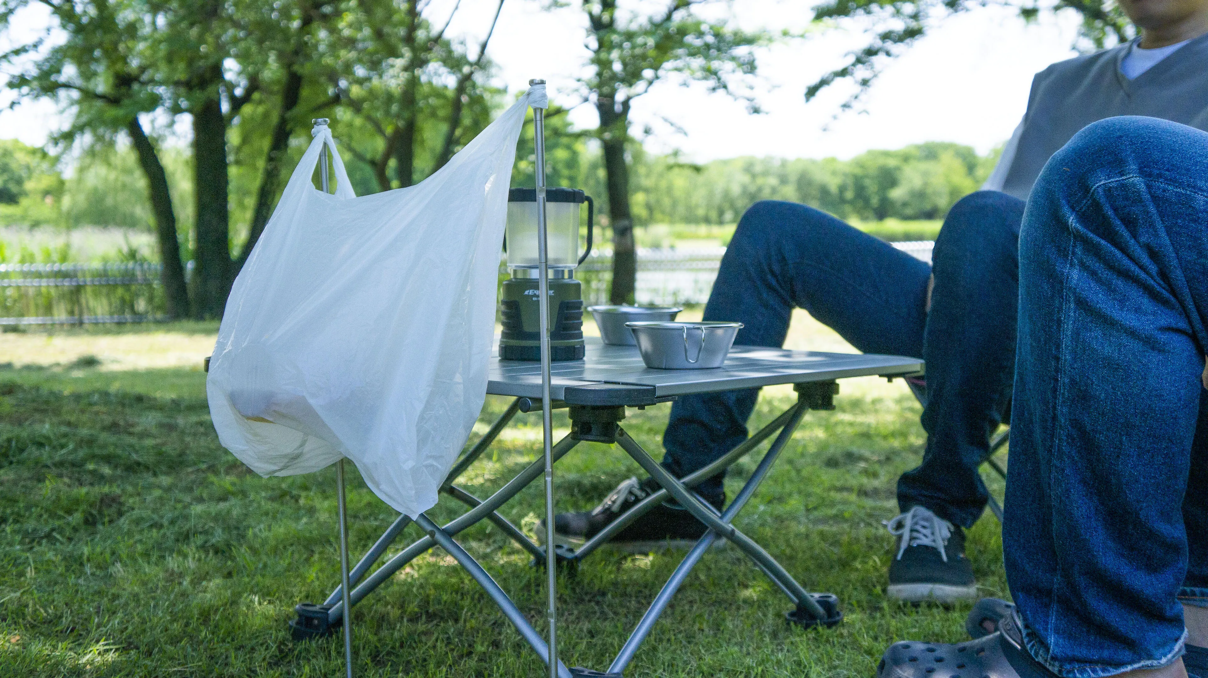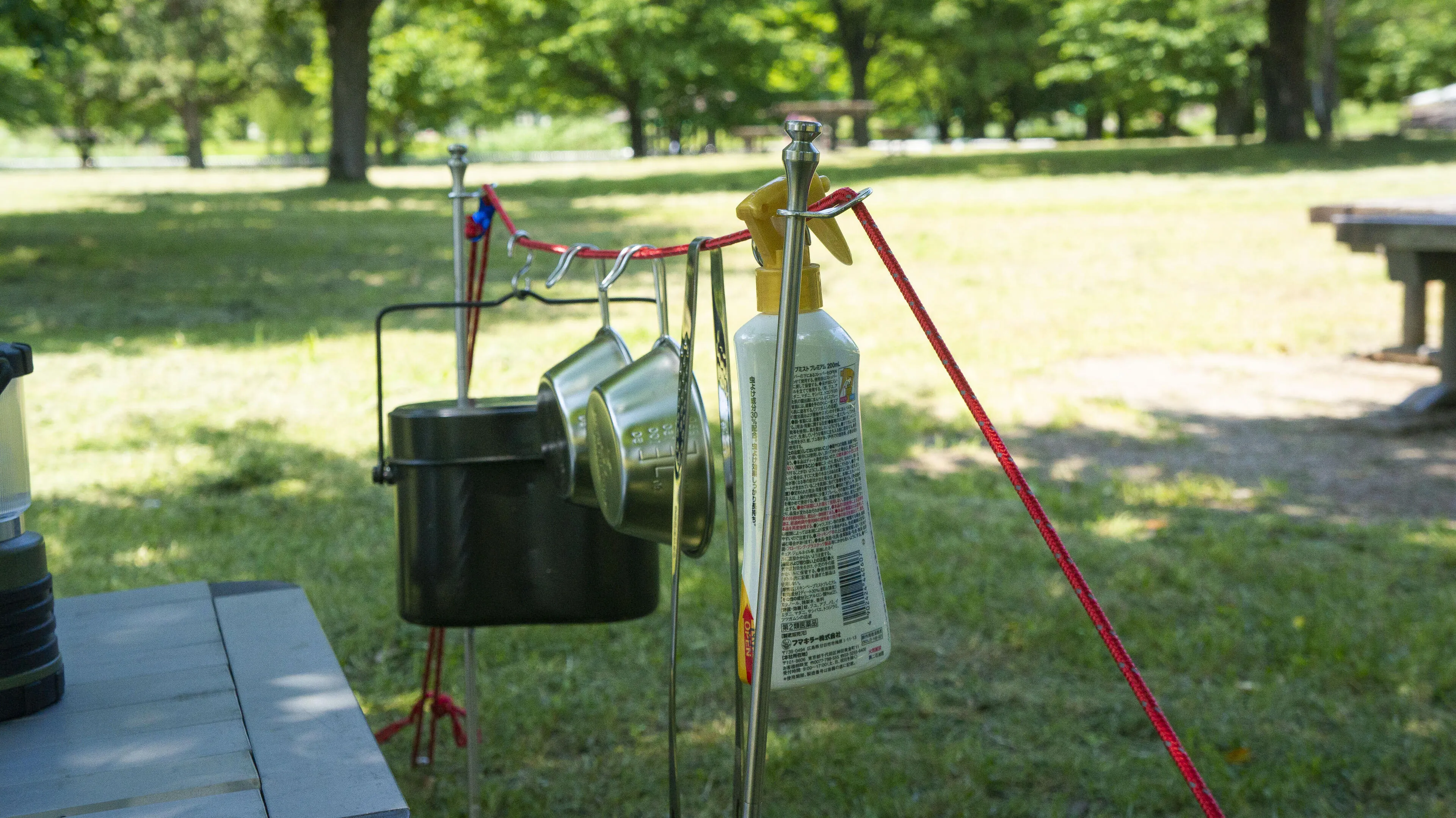 3分割することで、ペグ以外の用途に活用する拡張性が実現。ランタンスタンド、薪スタンド、ゴミ箱、収納、焚き火台、料理スペースなど様々なカスタマイズが可能。