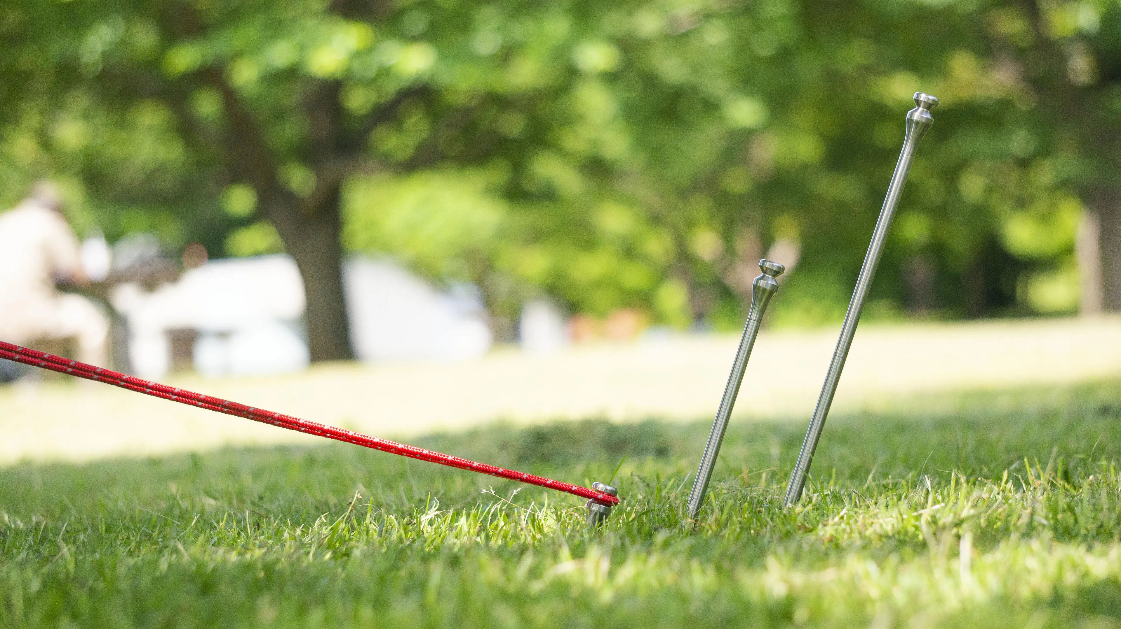 もちろん、地面に挿すペグとしても力強い性能があります。不安定な地面では、ペグを伸ばすことで深く差し込むことができ、がっしりと地面を掴みます。強風が吹き荒れる環境でも安心してテントを貼ることが可能です。
