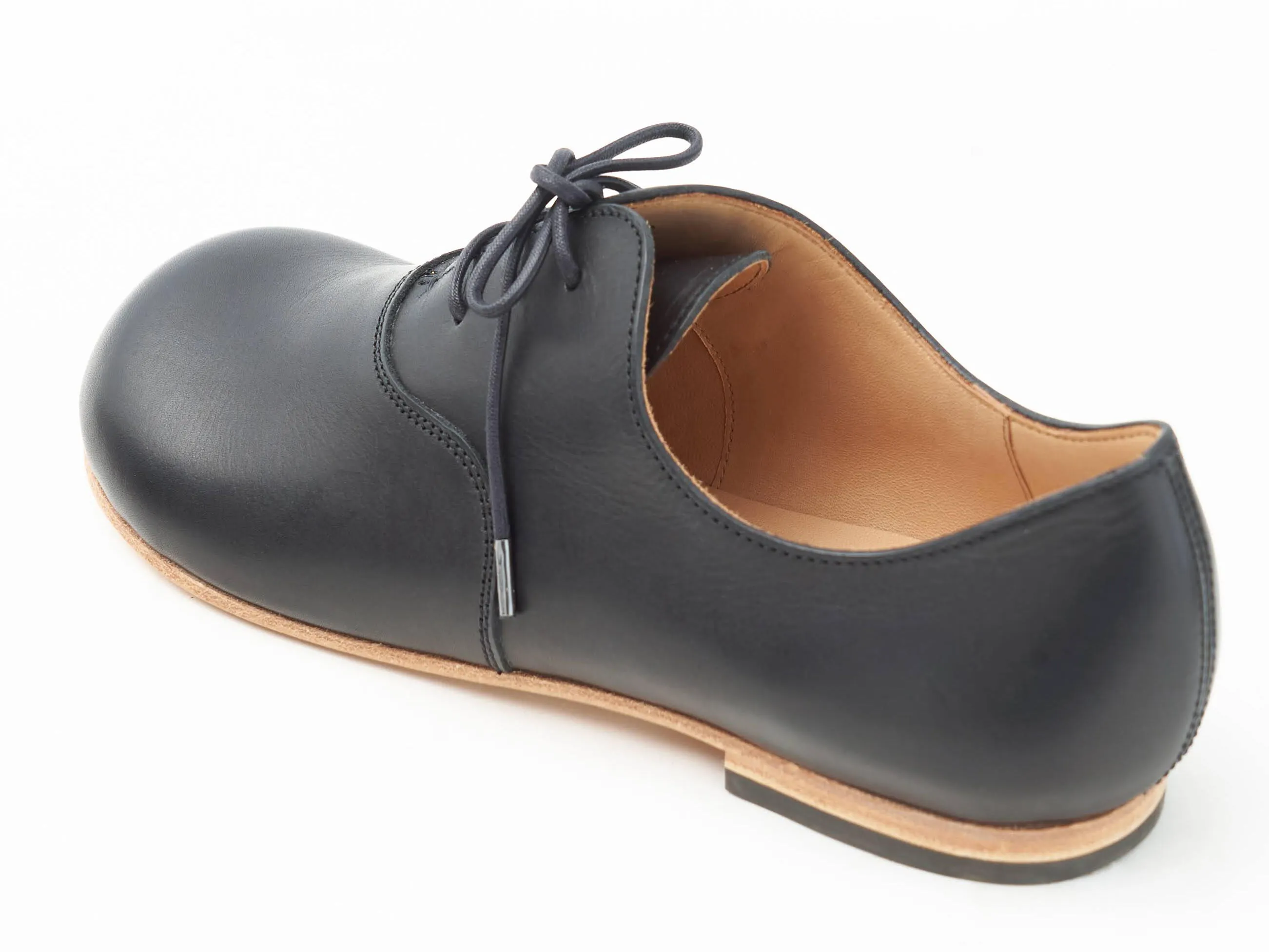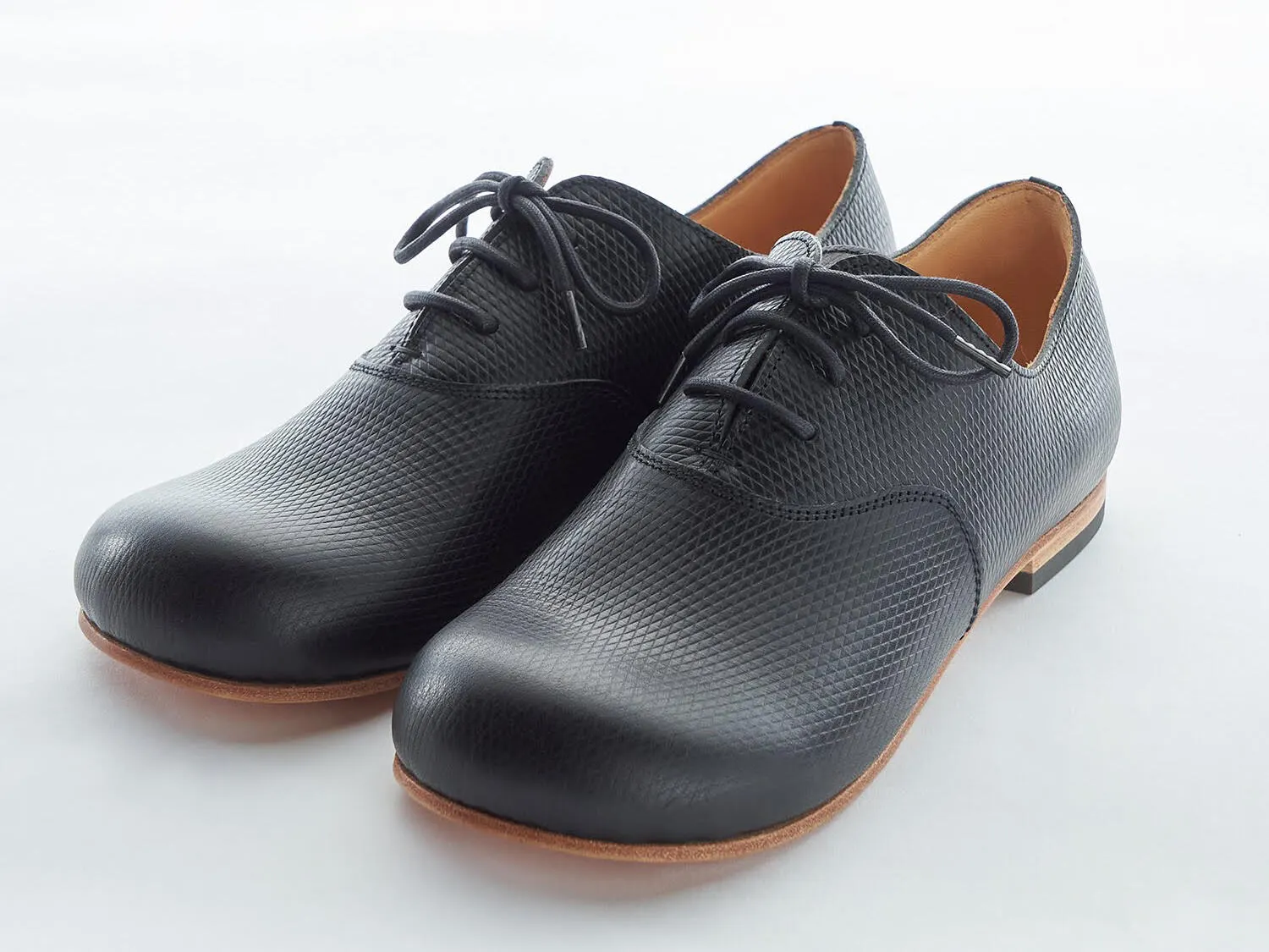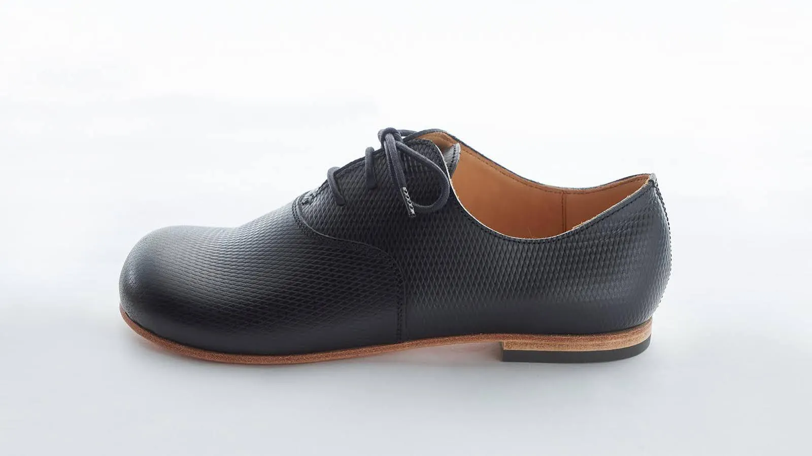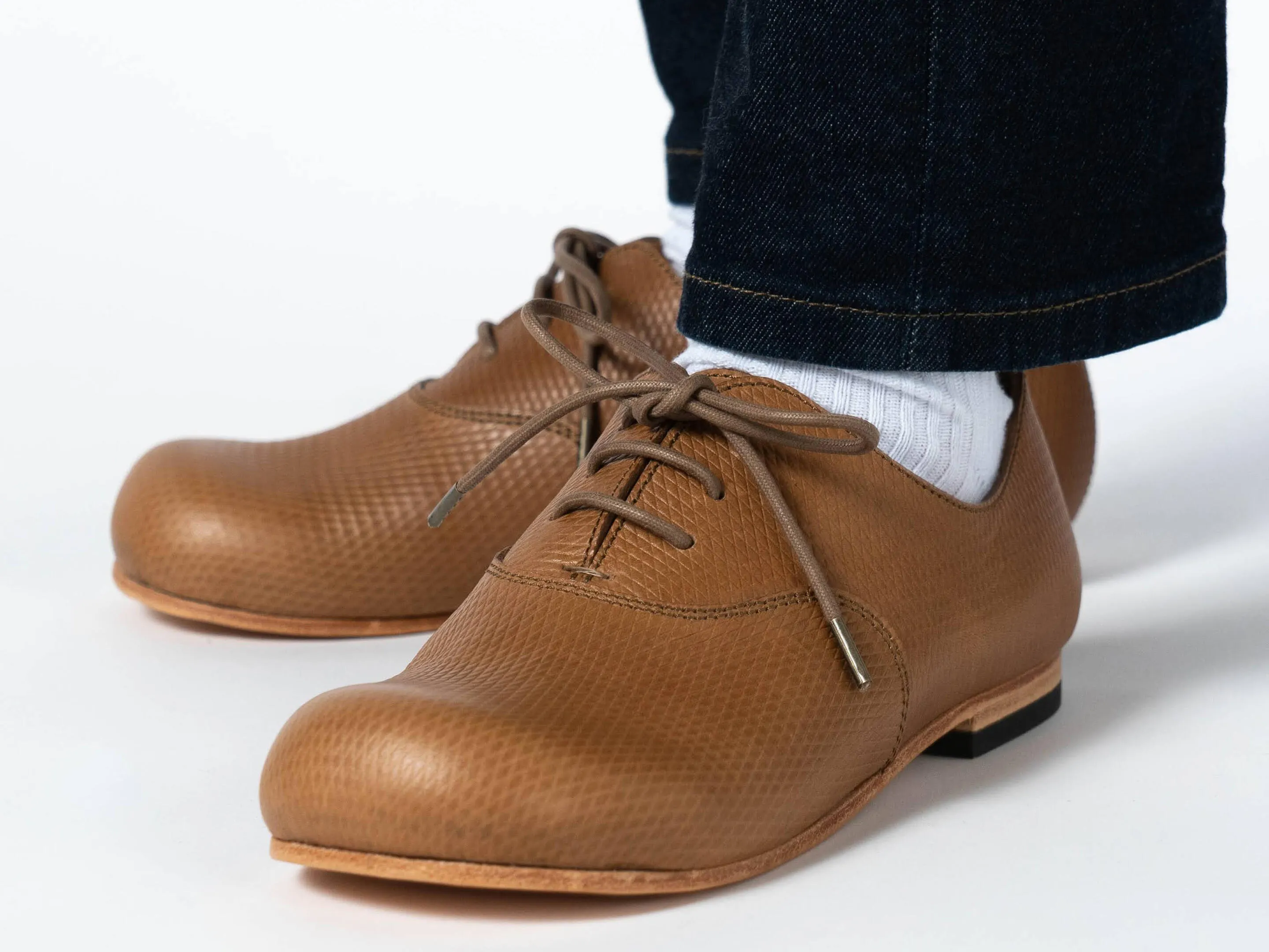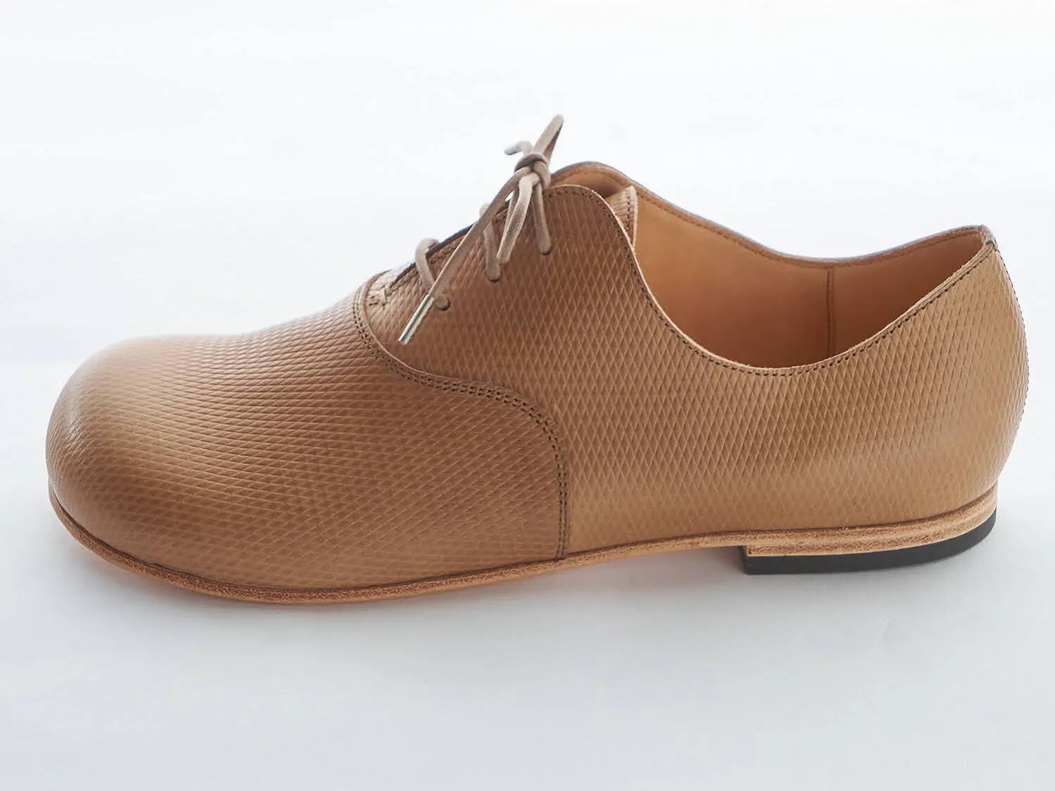 現在では幻の革と呼ばれる「ロシアンカーフ」の表情を、姫路のタンナーさんに再現して製作いただいた上質な牛革(ロシアンカーフ調レザー)を使用しています。DECO(デコ)の由来は、つま先がおでこのような丸いかたちであることから。