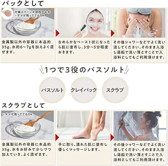 バスソルトだけでなく、パックとしても、スクラブとしてもご使用いただけます。