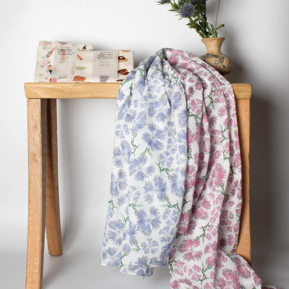 山本仁商店では、ハンカチやタオルを中心に、ネッカチーフ、ポーチ類、扇子などの布製品を幅広く取り揃えております。それぞれの商品には、京都で培われた経験と新しい感覚が息づいています。