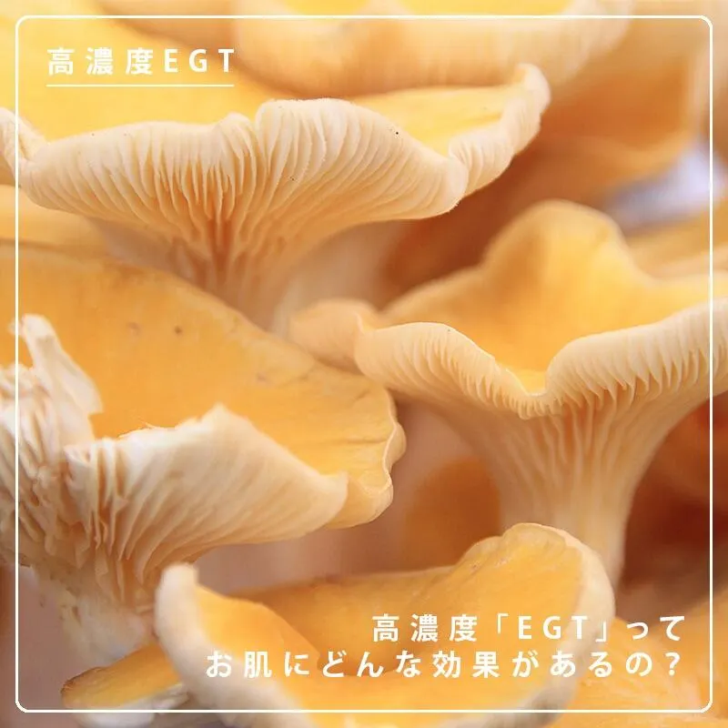キノコ由来の天然アミノ酸・高濃度EGTはビタミンEの7000倍の抗酸化力を持つといわれる超高機能成分。この高濃度EGTを、メイクアップ/スキンケア全製品に配合。