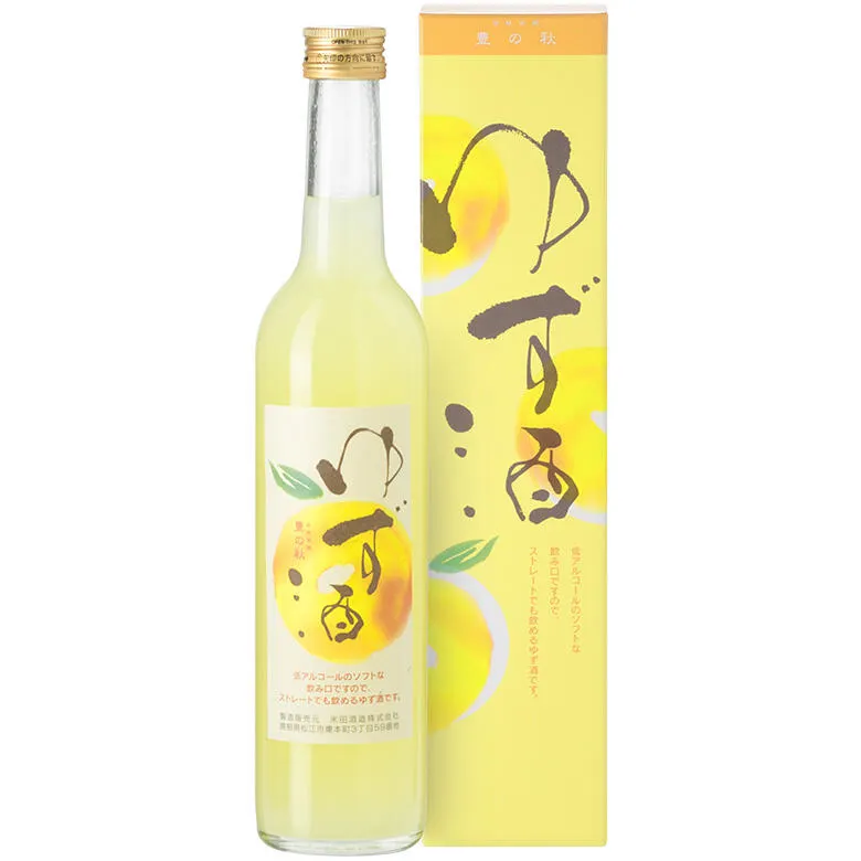 島根県益田市美都町産100%のゆず果汁と島根県産米100%使用の豊の秋 純米酒をブレンドした、アルコール分7%の低アルコールリキュールです。