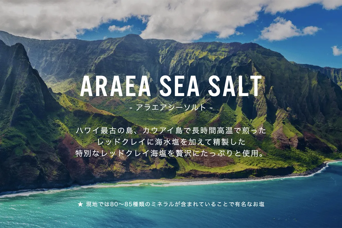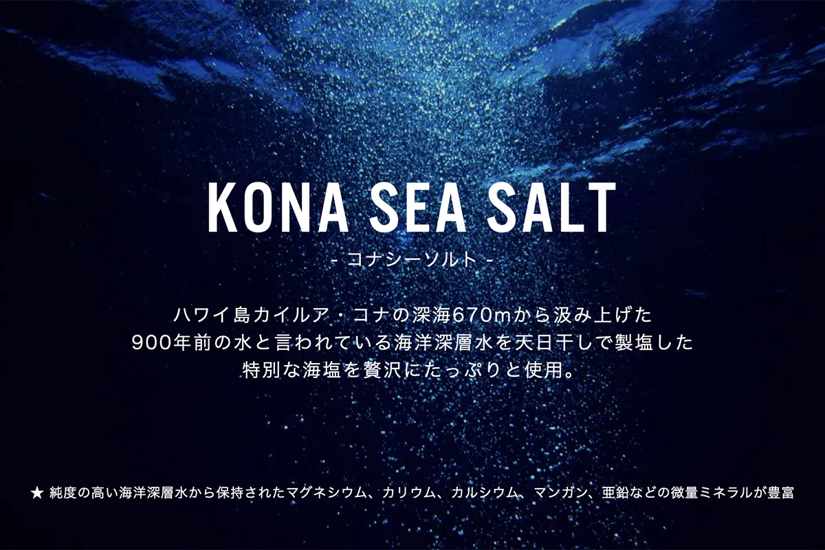 MADE IN JAPANで特殊製法により30%という世界トップクラスの塩配合率を実現しました。 コナシーソルトとアラエアシーソルトを使用しています。