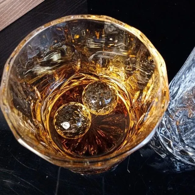 ドリンクセレモニーセットはウイスキーやワイン、ビール、カクテル、日本酒や焼酎、紹興酒など、コールドドリンクであれば洋の東西を問わずお使いいただけます。またアルコール以外にも、アイスコーヒーやアイスティー、冷茶、麦茶などもリッチな雰囲気でお楽しみいただけます。そこで、ロックにしてもウイスキーが薄まらないよう、ゴルフボール型の小さなガラスボールや大理石のアイスキューブを付属しました。