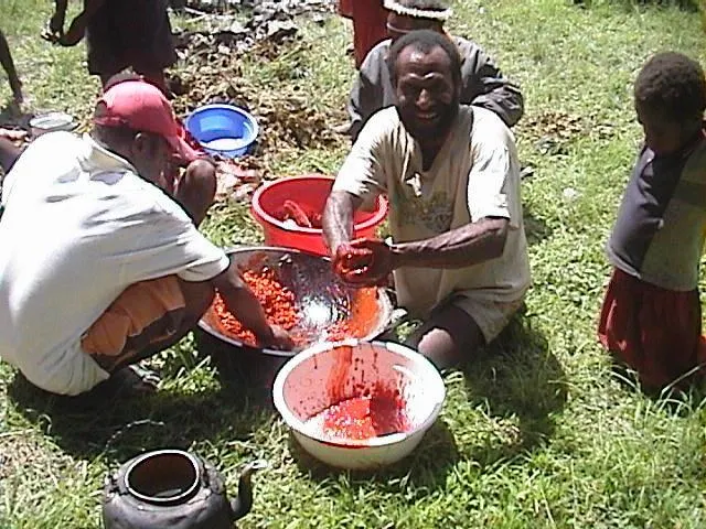 赤い果実ブアメラは、インドネシアの最東の世界第2の島のパプア島にだけ自然植生する稀少植物。