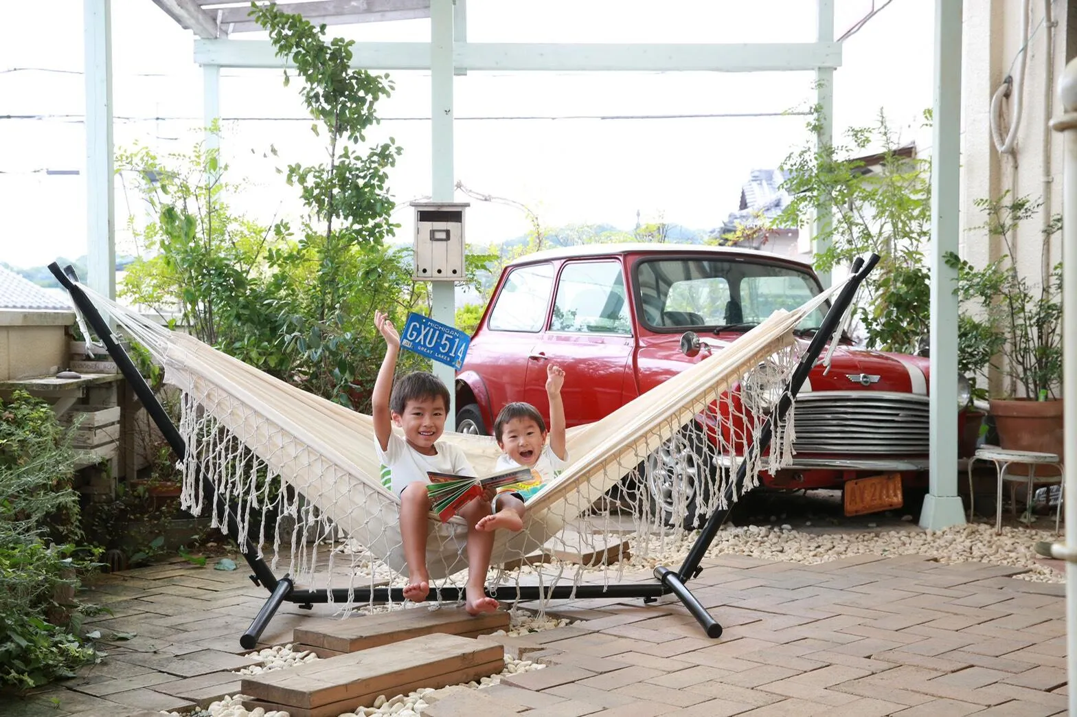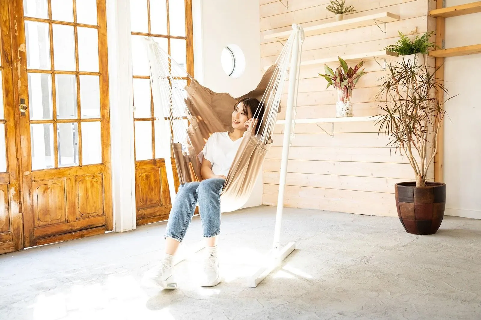 私たちは、ハンモックに揺られる心からのリラックス感をもっとたくさんの人に知ってもらいたい、専用の装置や場所がなくても、1畳にも満たないスペースで気軽にハンモックを味わうことができるということを広めたい、そんな思いでスタートした小さな会社です。